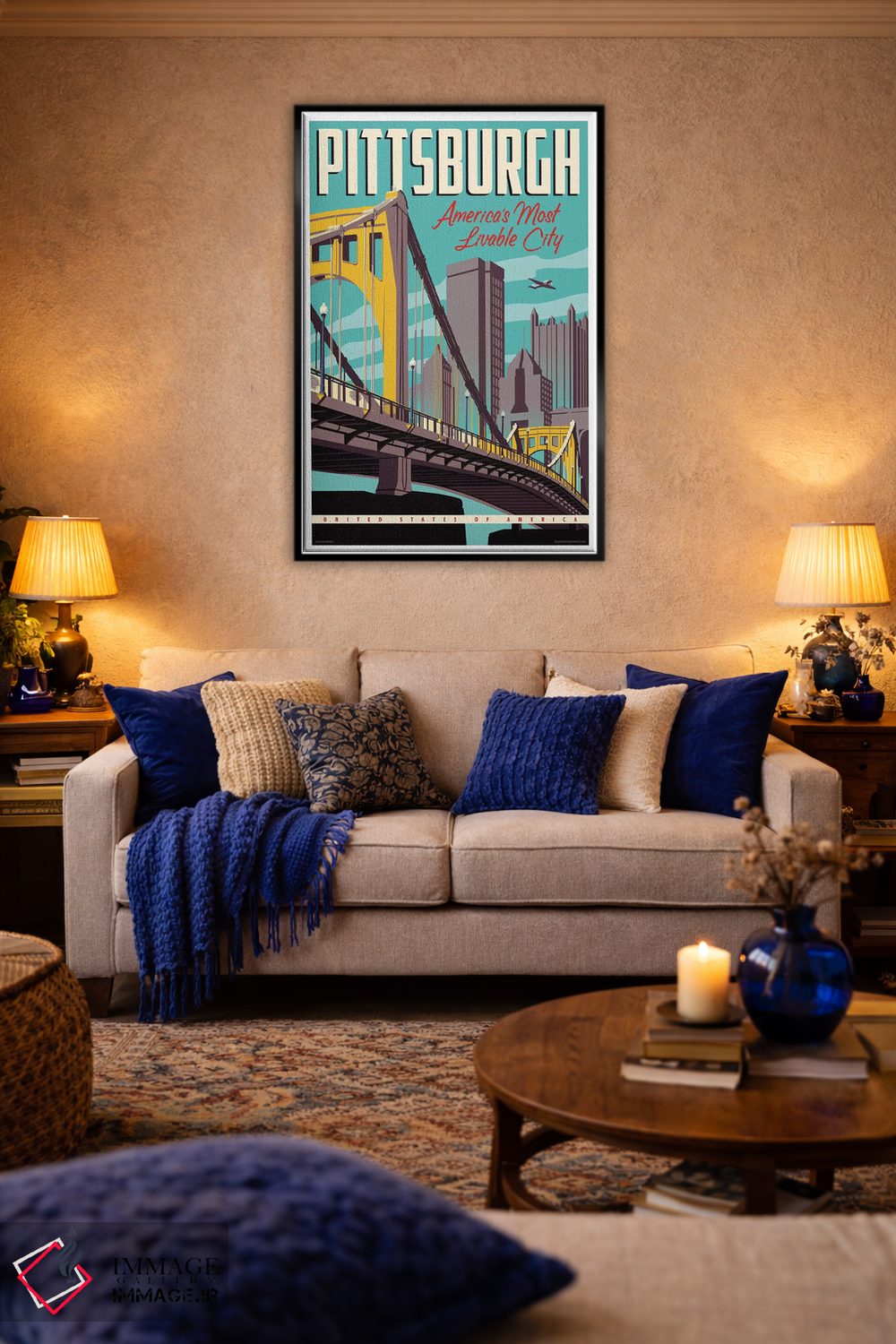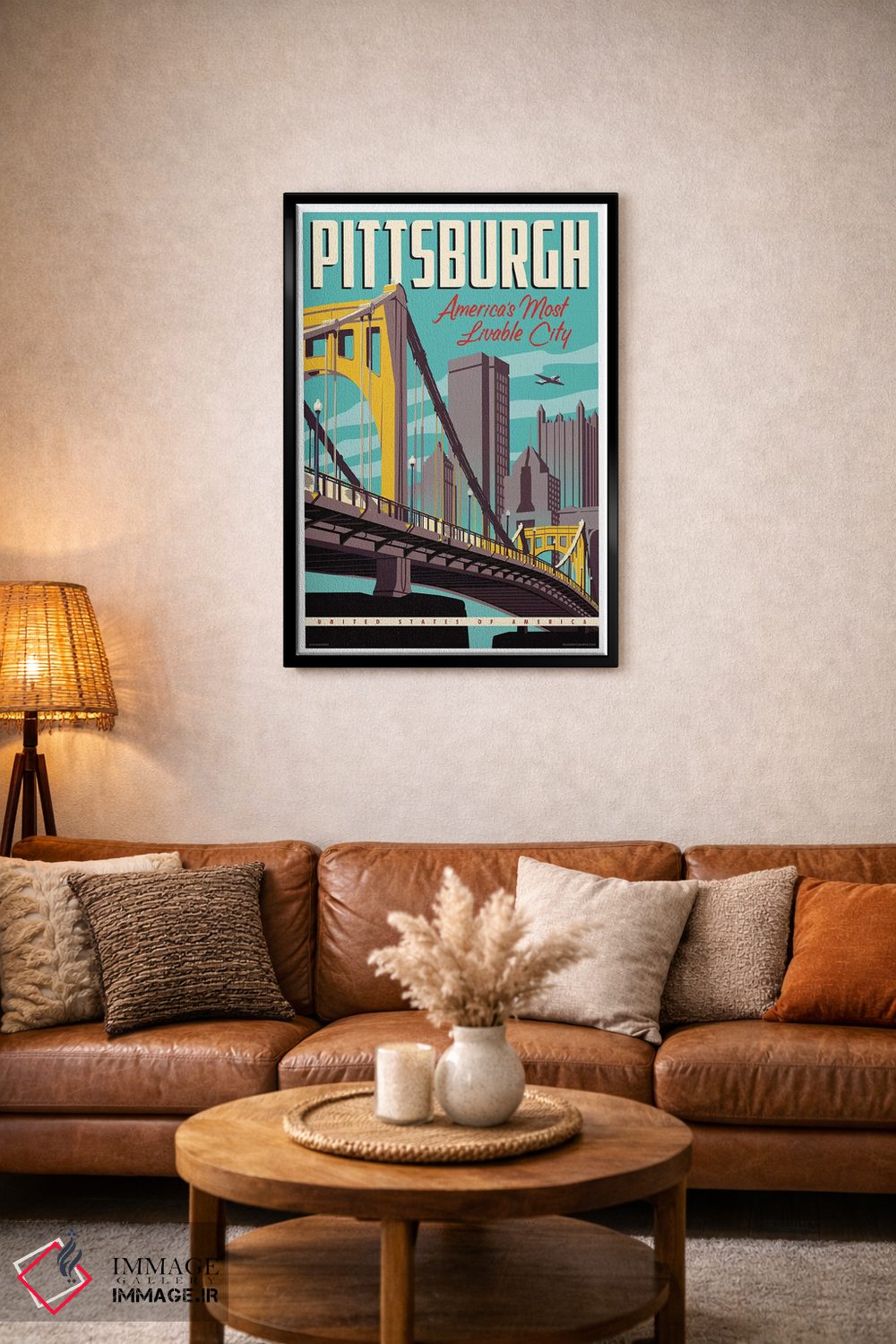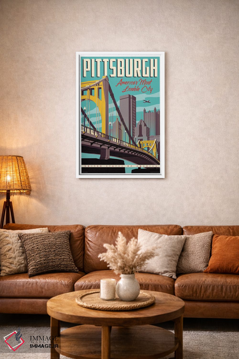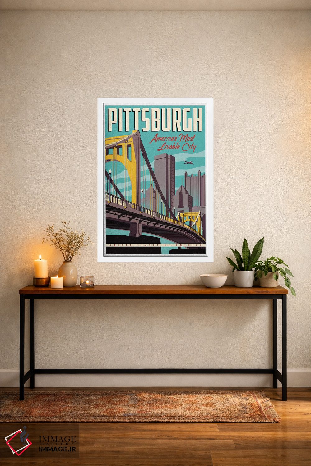 اگر دنبال یک اثر جوانپسند و دقیق هستید، «پوستر پیتزبورگ؛ قابل زیستترین شهر» اثرِ «جیم زانیسر» با موضوعِ این اثر در سبک هنری میدرخشد.