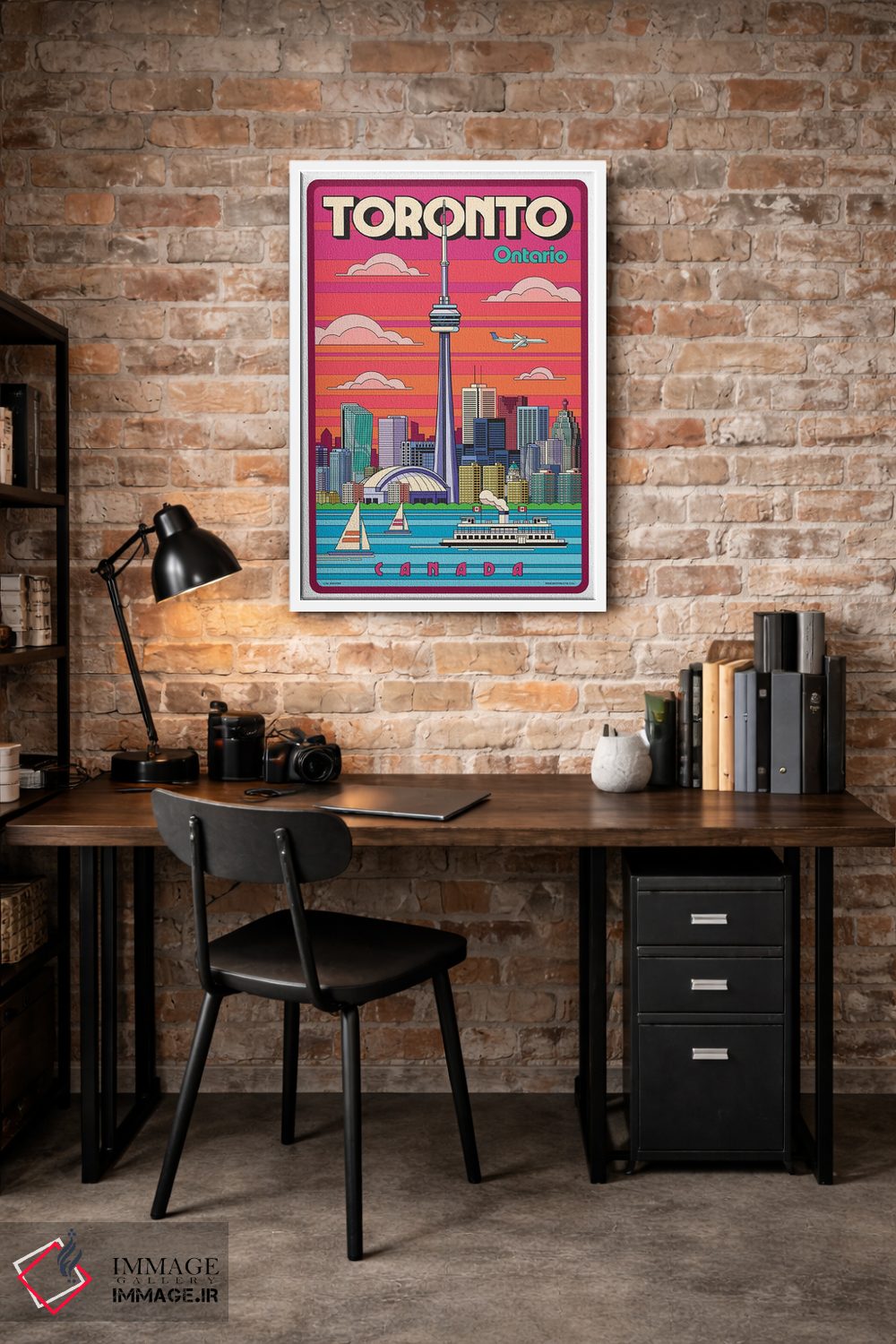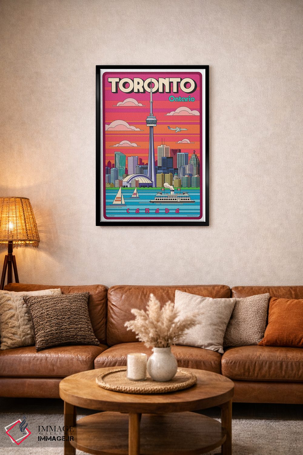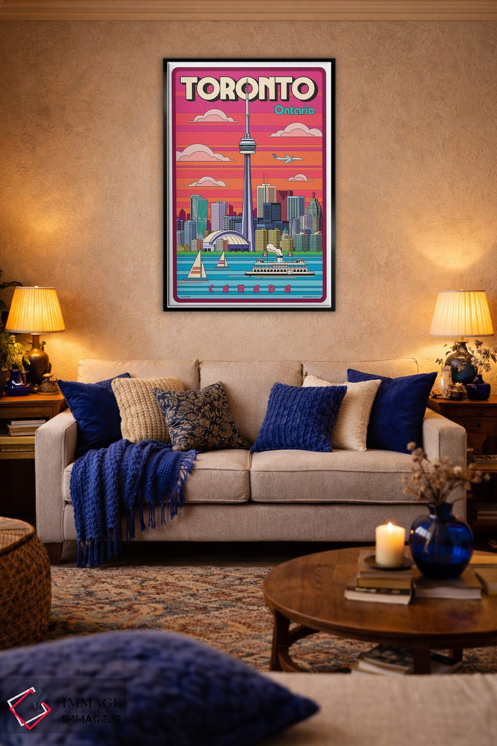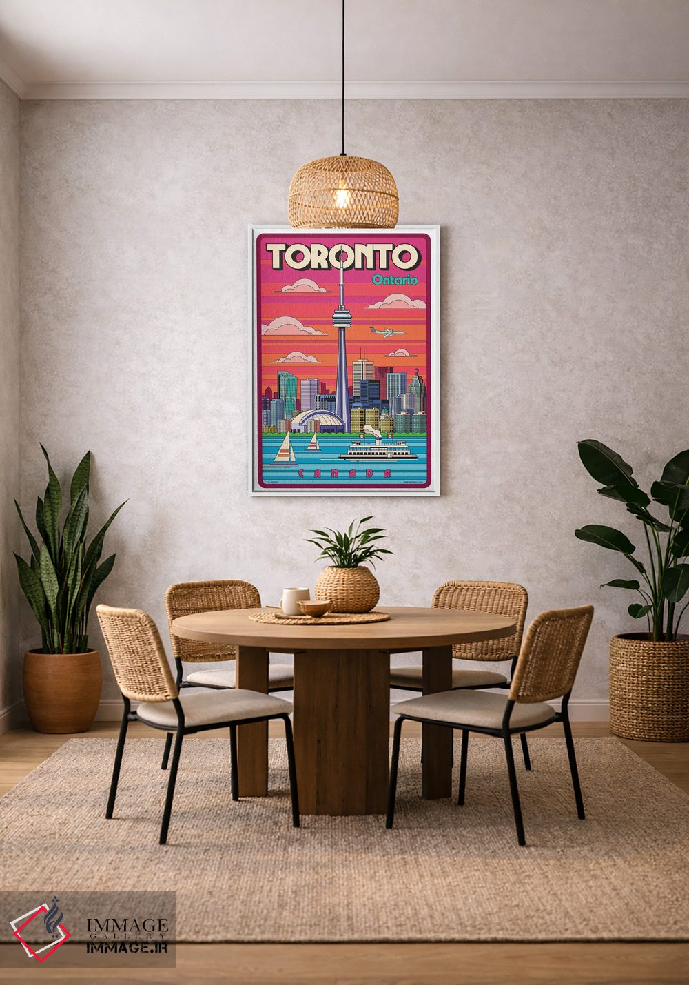 برای دیواری که دوست دارید «حرف داشته باشد»، «پوستر سفر پاپآرت تورنتو» اثرِ «جیم زانیسر» چیدمان را از حالت پراکنده خارج میکند؛ برای دکورهایی که بافت و جزئیات در آن مهم است پیشنهاد میشود. به فضا حس «گالری خانگی» میدهد، بدون اینکه اغراق کند.