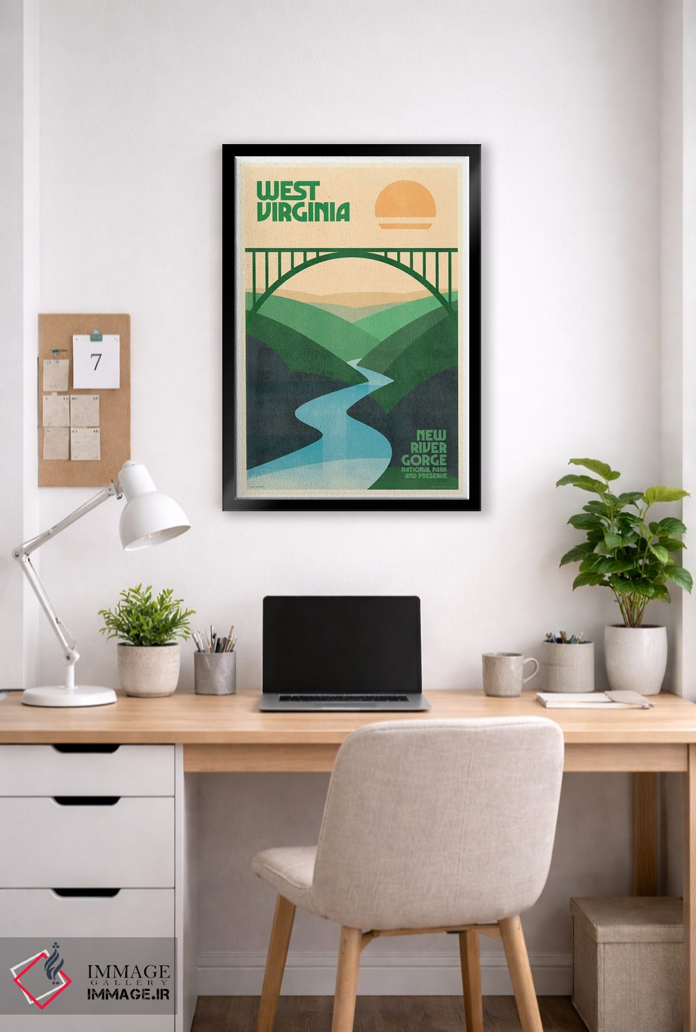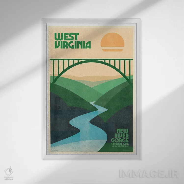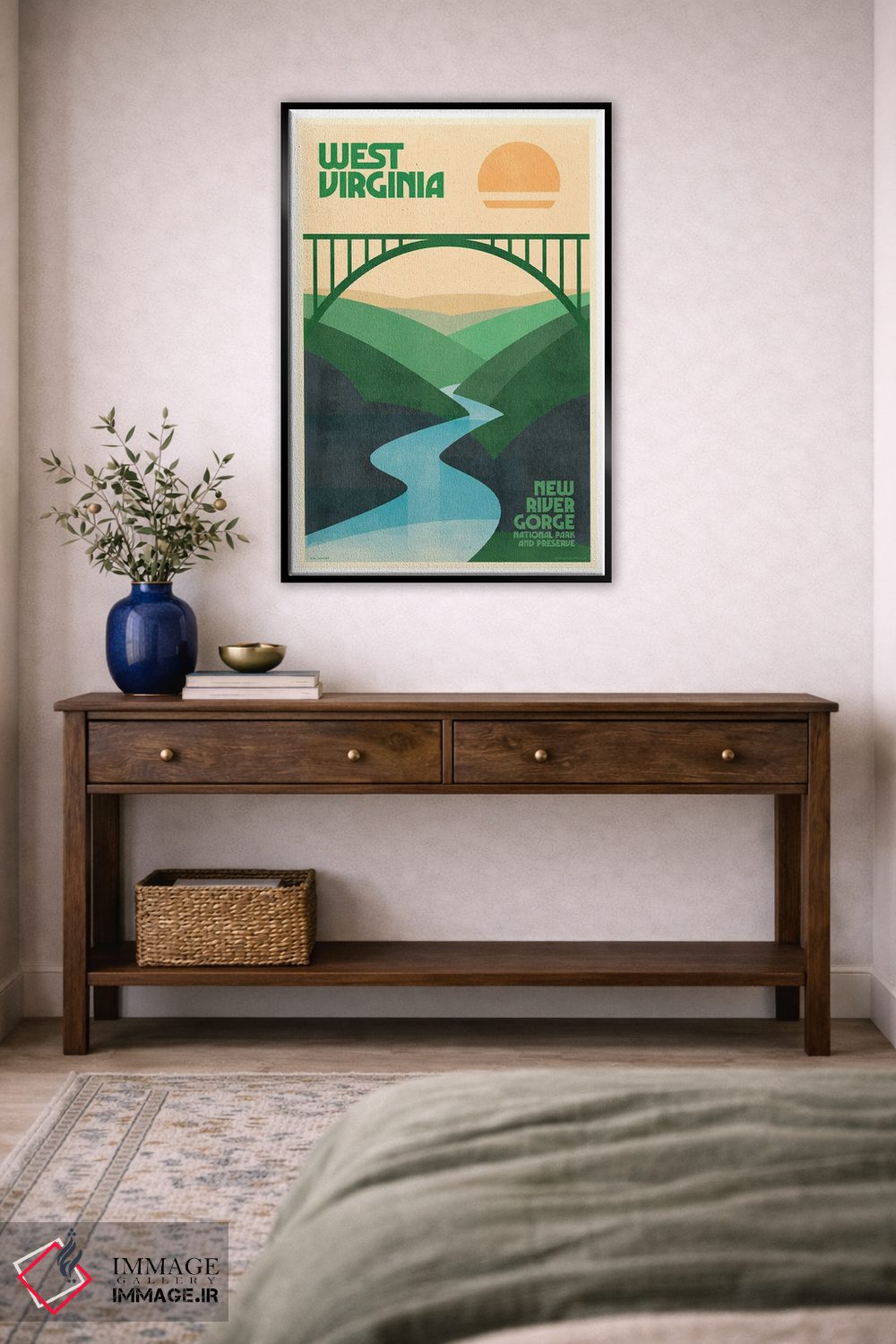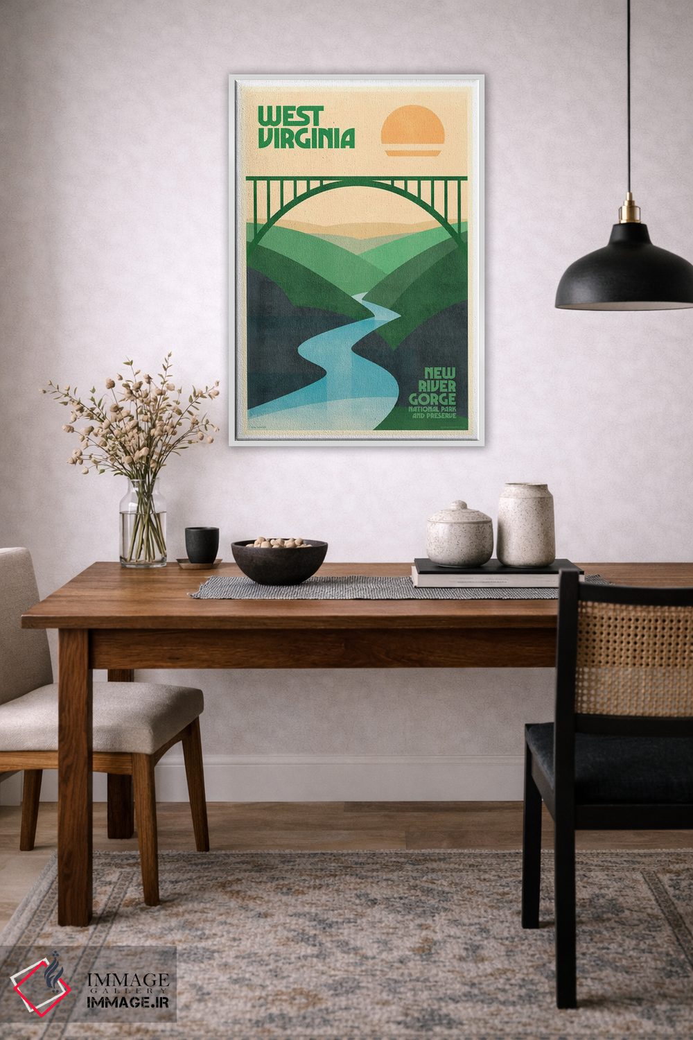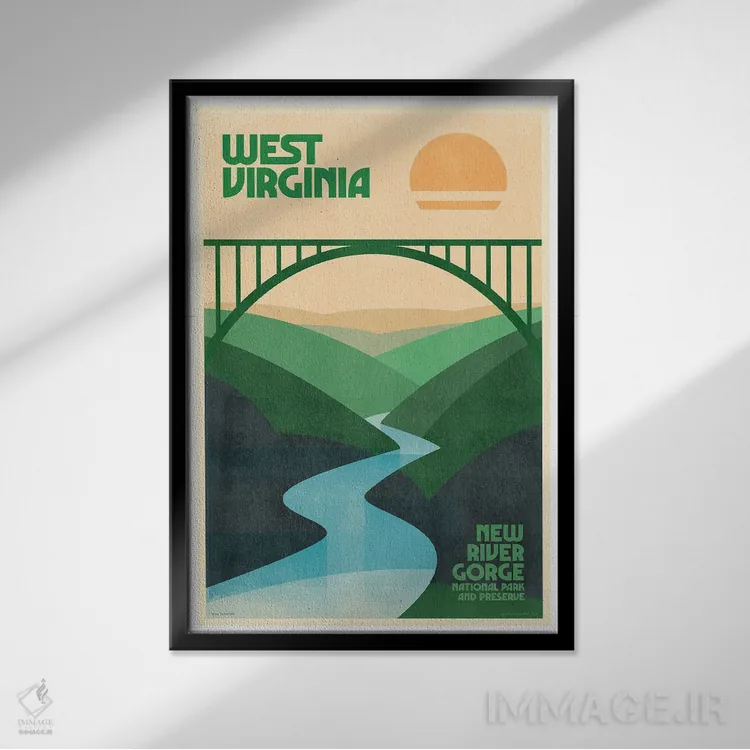 اگر دیوارِ راهرو یا گوشهی مطالعه نیاز به یک قاب خوشانرژی دارد، «پوستر رترو سفر ویرجینیای غربی» اثرِ «جیم زانیسر» با تم این اثر گزینهی مناسبی است.