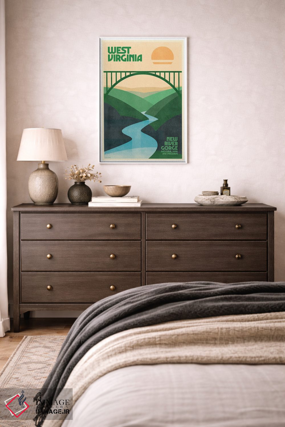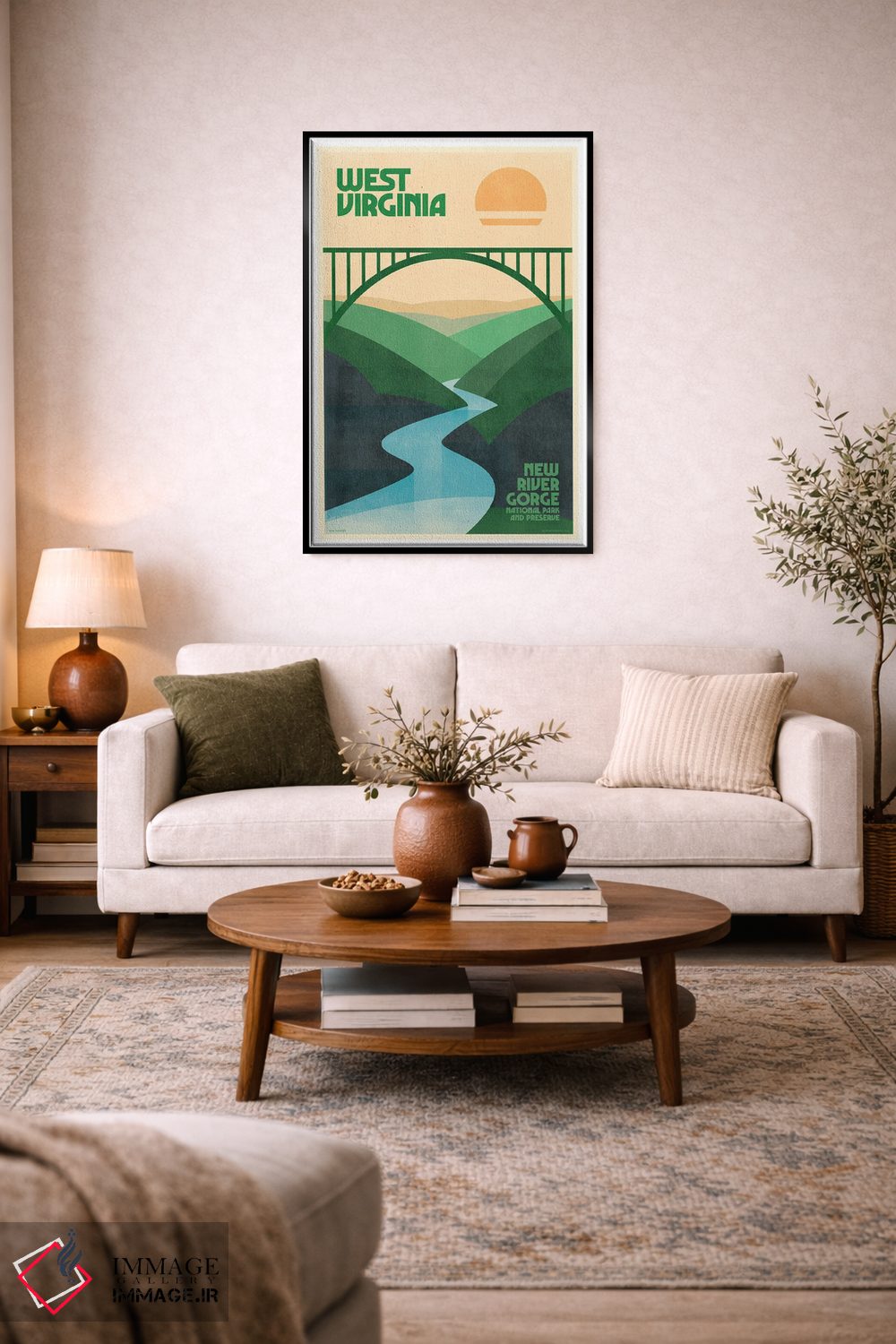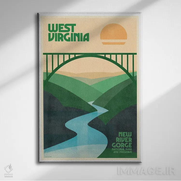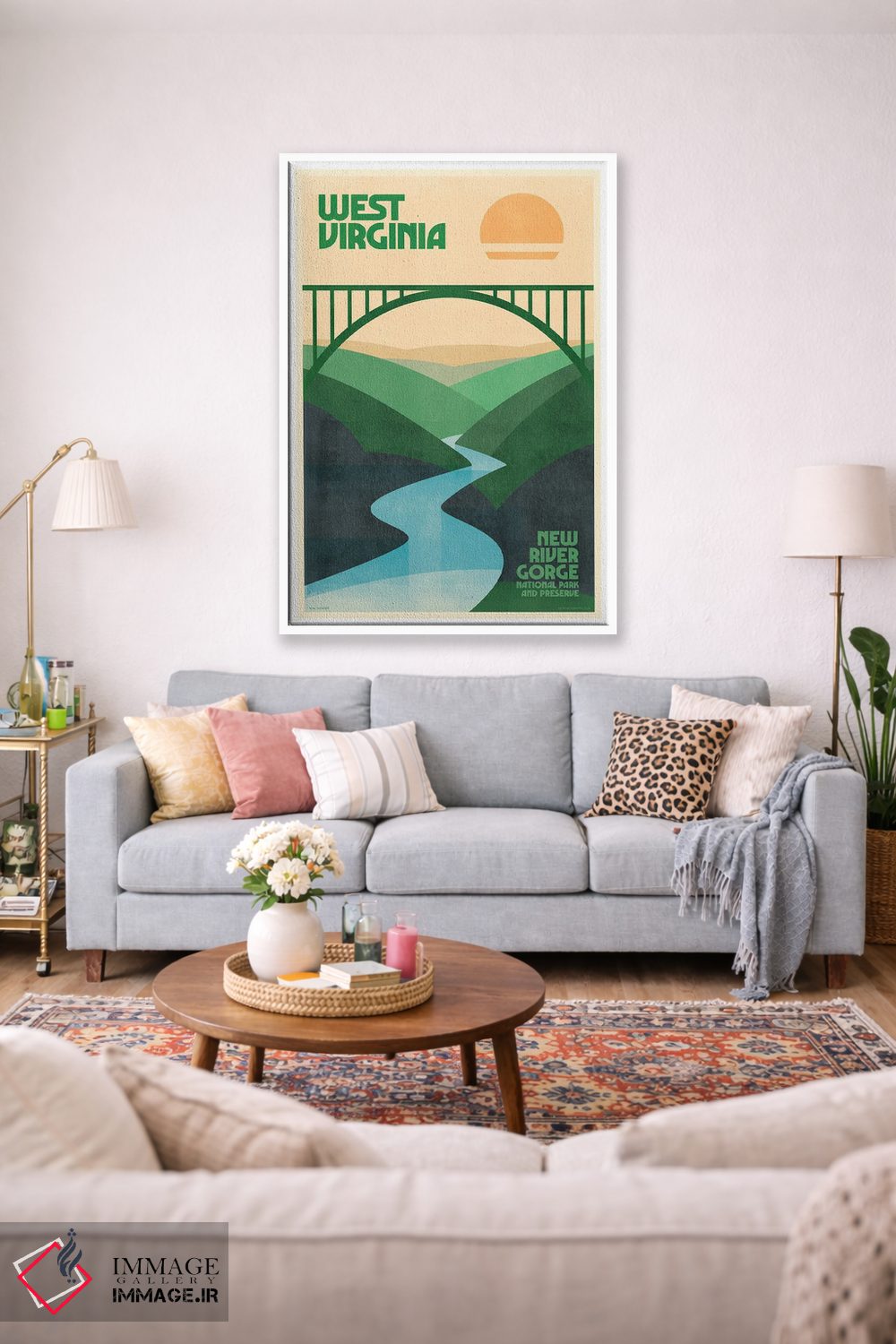 اگر دیوارِ راهرو یا گوشهی مطالعه نیاز به یک قاب خوشانرژی دارد، «پوستر رترو سفر ویرجینیای غربی» اثرِ «جیم زانیسر» با تم این اثر گزینهی مناسبی است.