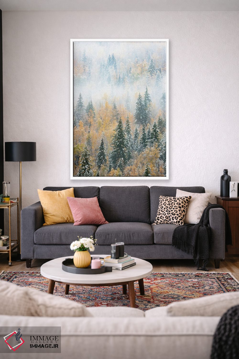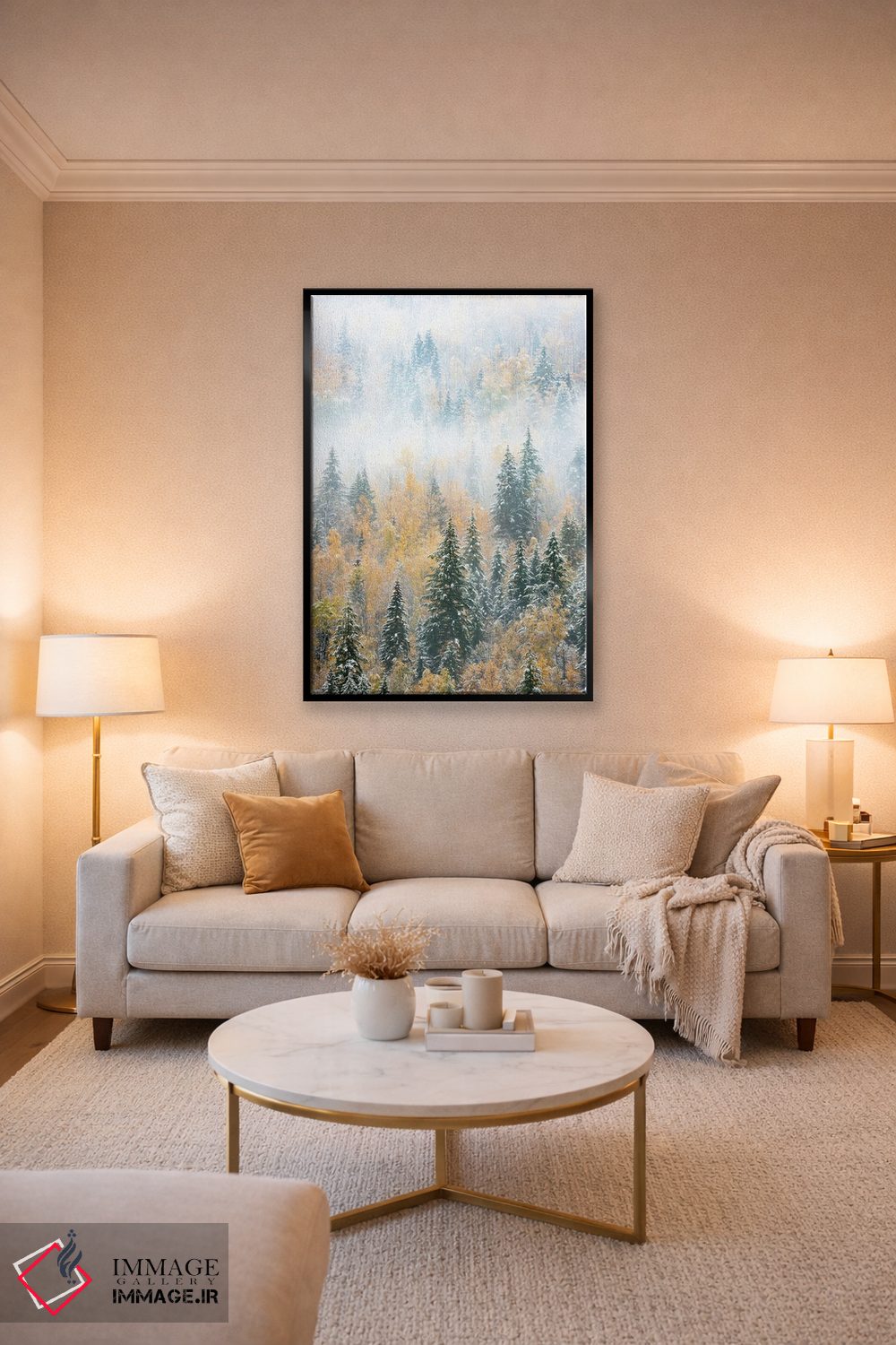 برای فضایی که میخواهید مرتبتر و حرفهایتر دیده شود، «Canada. Early morning fog in a mixed tree forest، Wells Gray Provincial Park.، بریتیش کلمبیا، کانادا. مه صبحگاهی در جنگل مختلط، پارک استانی ولز گری» اثرِ «جودیت زیمرمن» جلوهٔ رنگها را طبیعیتر و متعادلتر نشان میدهد؛ برای فضاهایی با نور طبیعی پیشنهاد میشود. فضا را شلوغ نمیکند؛ فقط دقیقترش میکند.