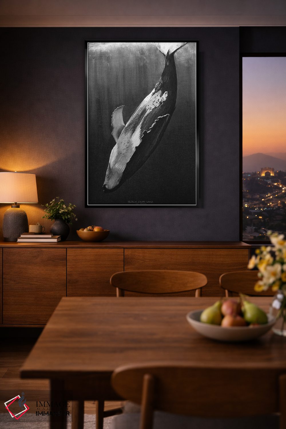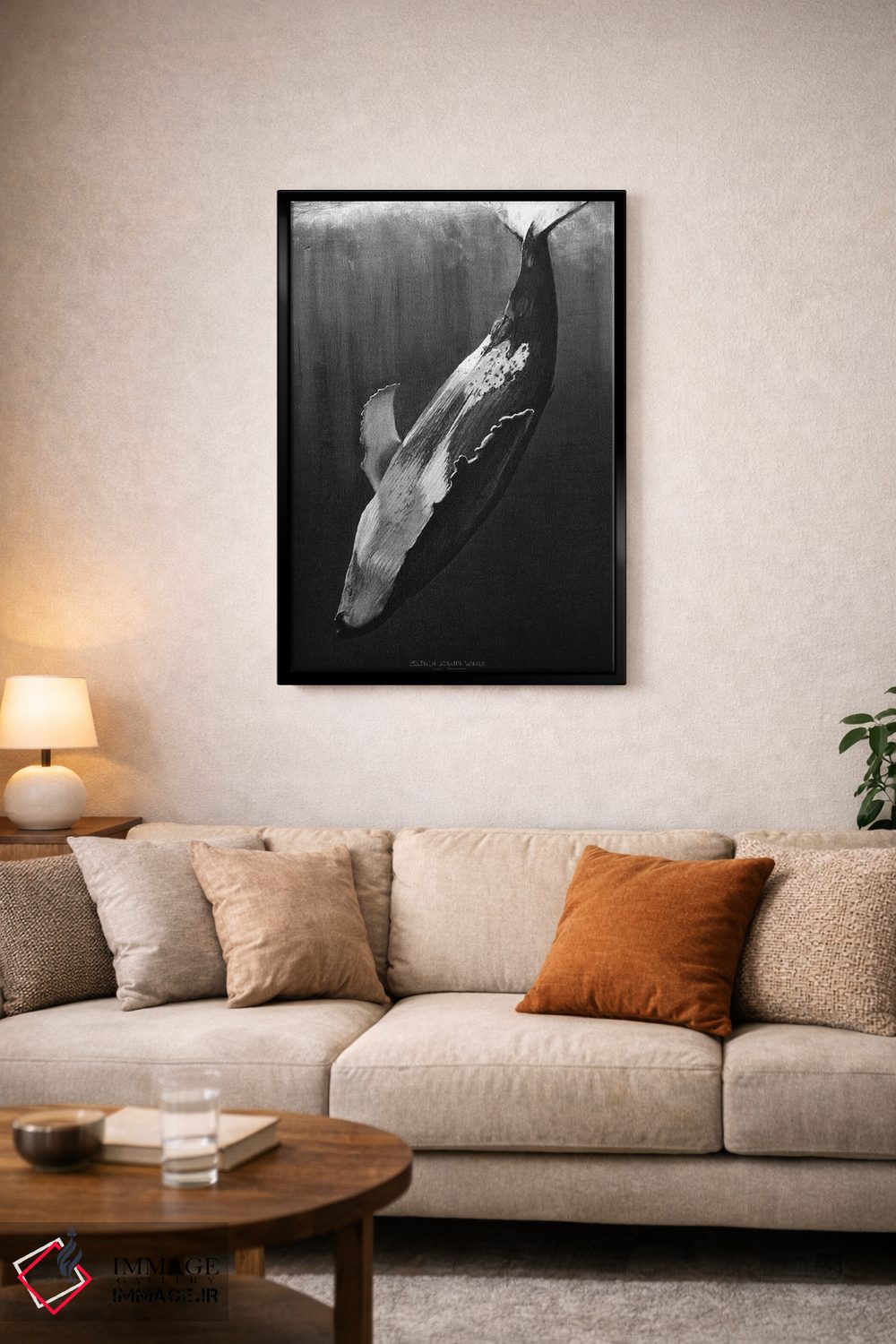 تابلو دکوراتیو نهنگ سیاه اثر یوهان زلنین - نمای روبه‌رو روی دیوار