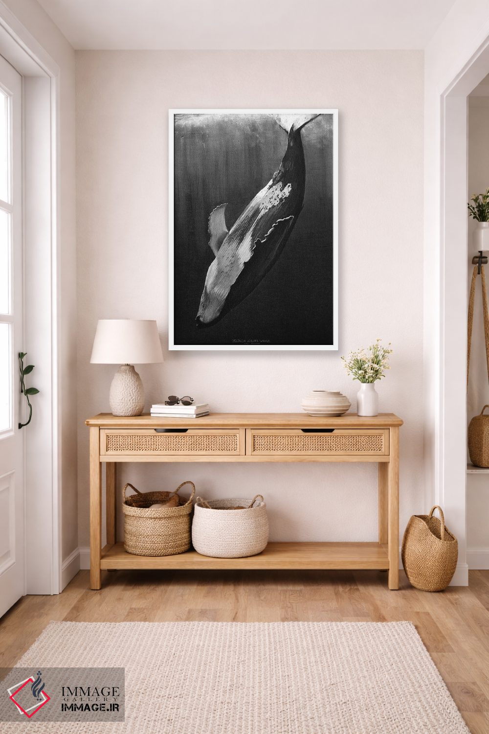 تابلو دکوراتیو نهنگ سیاه اثر یوهان زلنین - نمای قاب‌دار سفید
