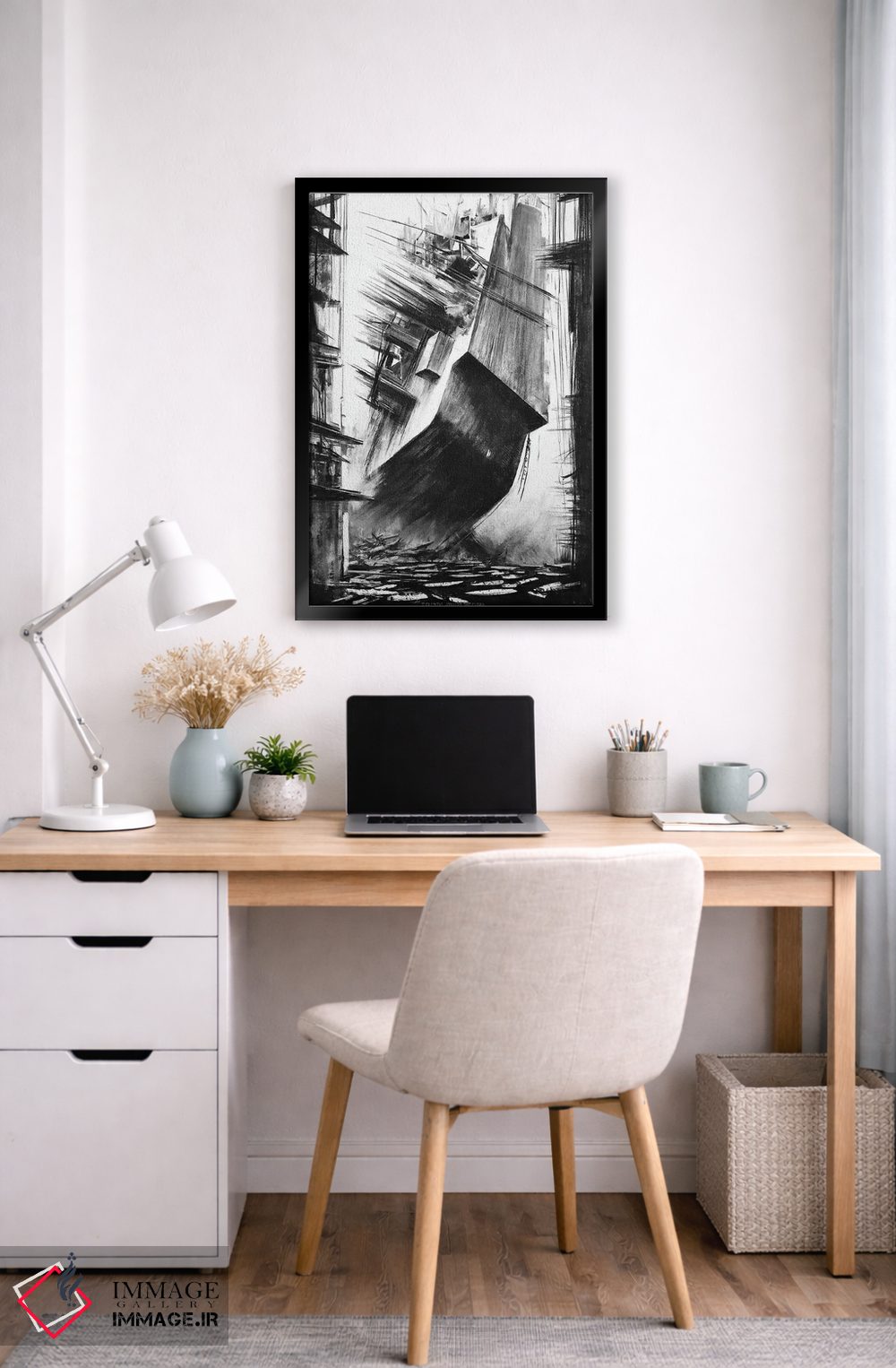 براساس پالت خنثی اثر، قاب مشکی مات (فریم باریک) پیشنهاد اول است و سفید مات (فریم باریک) مکمل. برای سفارشهای پروژهای با ابعاد و قابهای اختصاصی با ایماژ در تماس باشید.