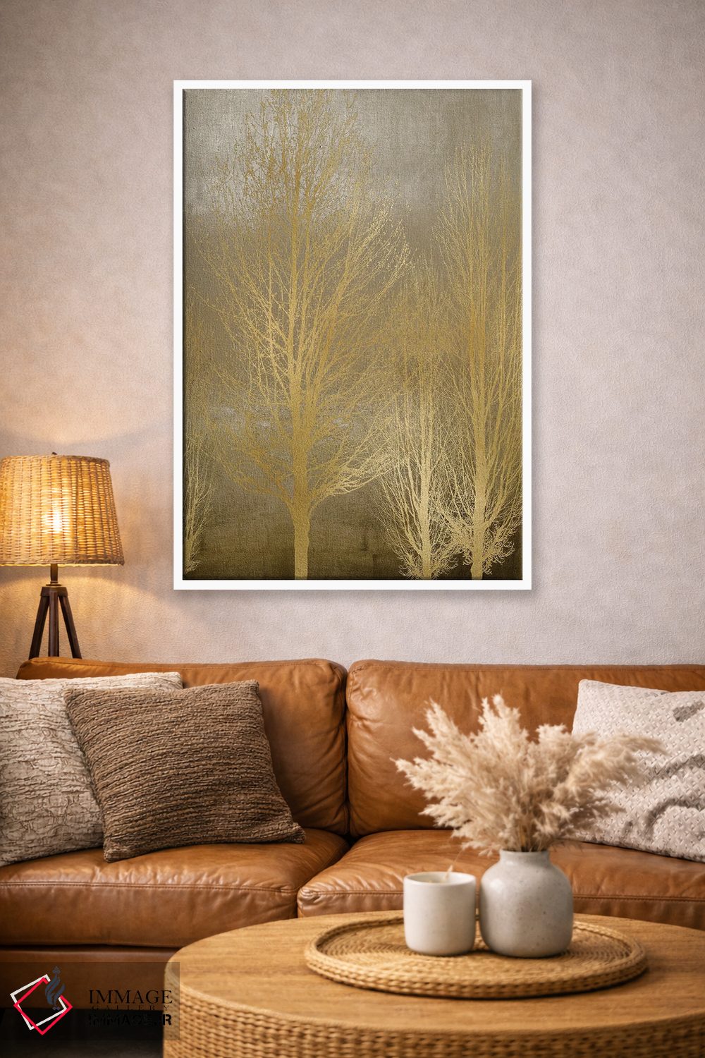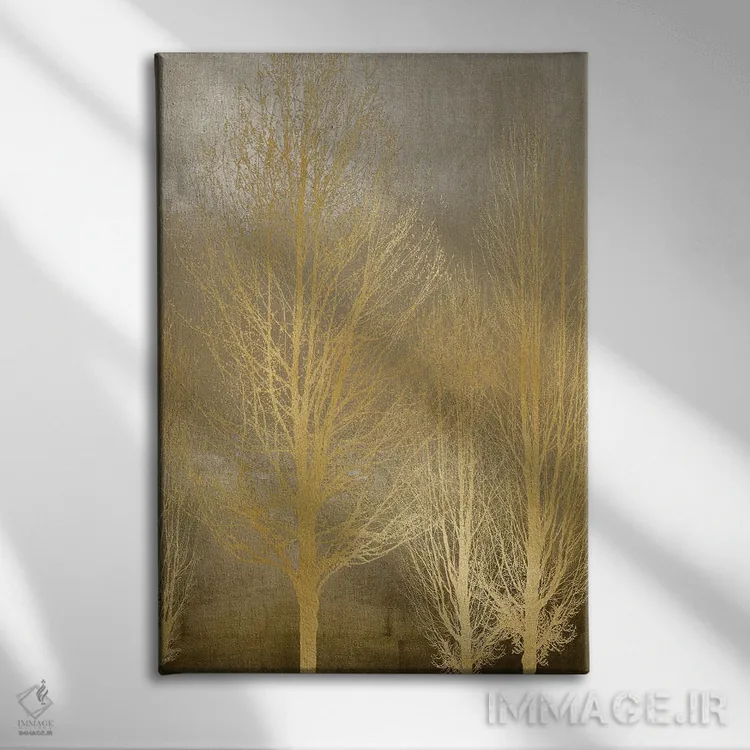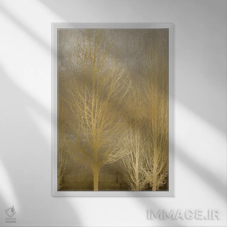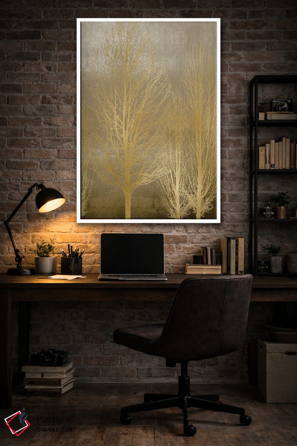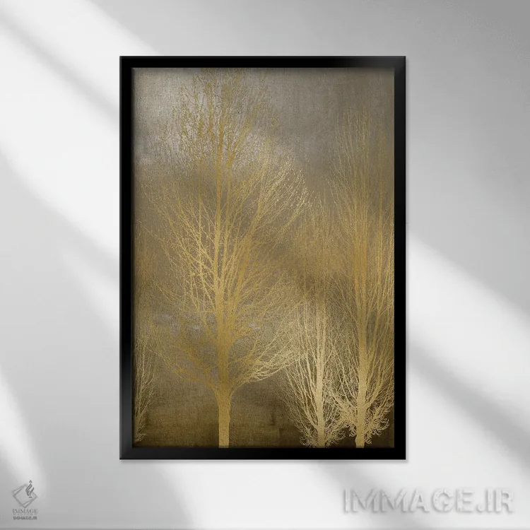 تابلو مدرن درختان طلایی روی پنل قهوه ای II اثر کیت بنت