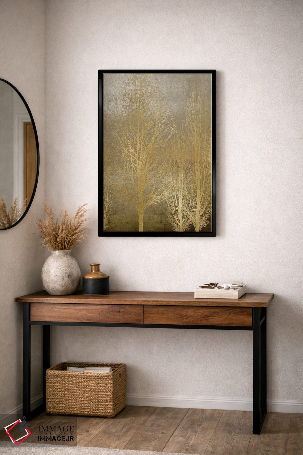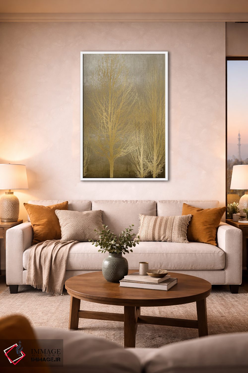 براساس پالت گرم اثر، قاب تیک گرم (چوبی) پیشنهاد اول است و مشکی مات (فریم متوسط) مکمل. برای سفارشهای پروژهای با ابعاد و قابهای اختصاصی با ایماژ در تماس باشید.