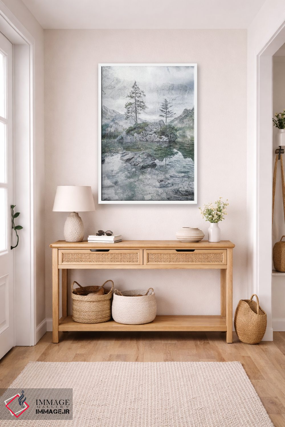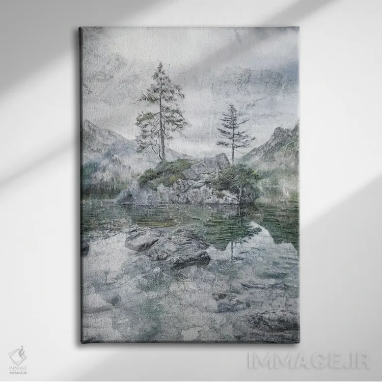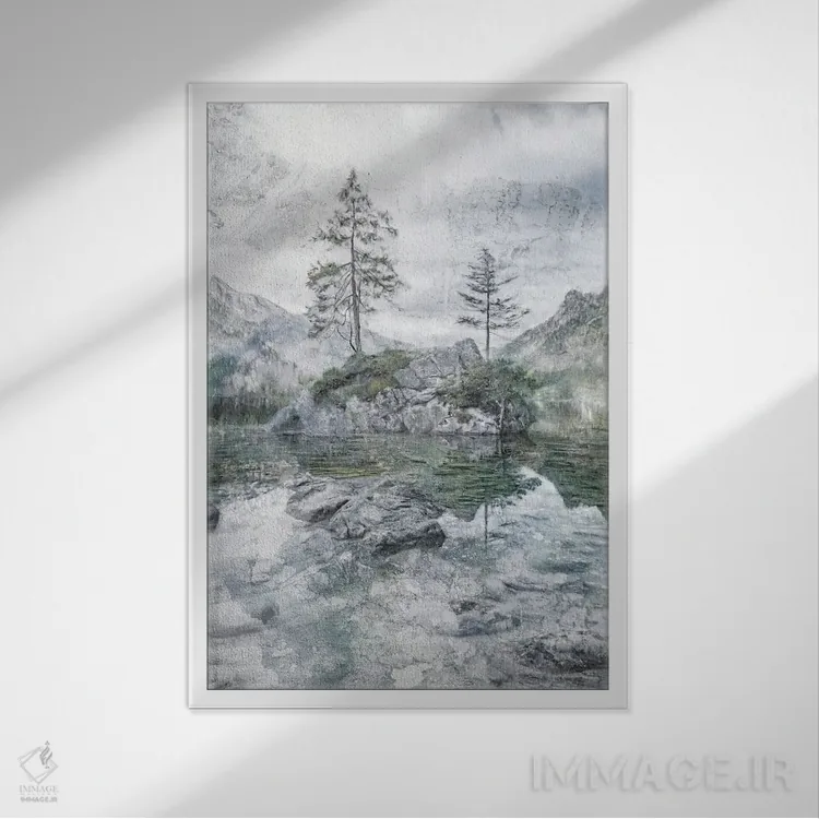 «تنهایی در کنار دریاچه و کوه» اثرِ «کاترینا جونز» یک قاب گرم و قابل چیدمان است؛ برای خانههایی که دکور روستیک/کلبهای دارند، گزینهی مطمئن محسوب میشود.