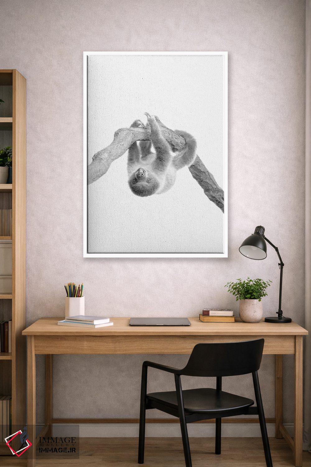 اگر میخواهید دیوار کمی سرزندگیِ محترمانه داشته باشد، «تنبل کوچولو II» اثرِ «کیمبرلی آلن» در کنار رنگهای خنثی، تضاد دلچسبی میسازد، برای هدیهدادن به دوستداران حیوانات گزینهٔ مناسبیست. اگر دنبال اثر دوستداشتنیِ «بیغلو» هستید، این یکی دقیق مینشیند.