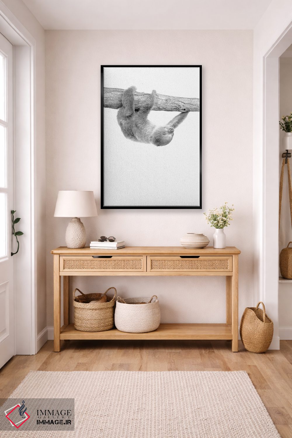 اگر به آثار حیوانات علاقه دارید، «تنبل کوچولو III» اثرِ «کیمبرلی آلن» فضا را صمیمیتر و دعوتکنندهتر نشان میدهد، برای دکورهایی با رنگهای خنثی گزینهٔ مناسبیست. در کنار گیاهان و نور طبیعی، جذابتر هم میشود.