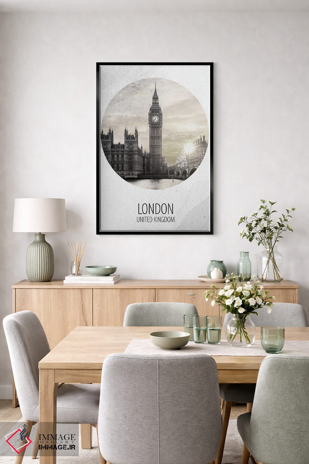 «لندن (بریتانیا)» اثرِ «کیمبرلی آلن» با سبک هنری و موضوعِ این اثر، یک انتخاب مدرن و تمیز برای دکور امروز است.