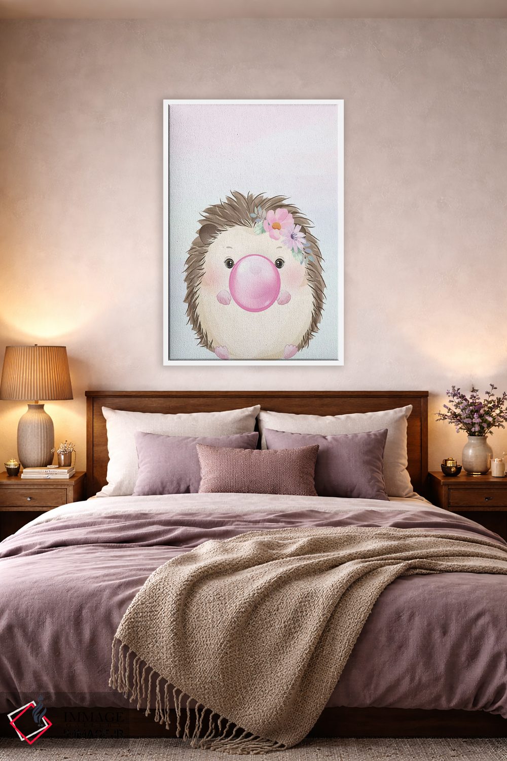 بوم گالری ایماژ نسخهی چیدماناتیوِ گالریپسند از یک اثر هنری است؛ روی کنواس سفیدِ یکدست و بدون اسید با چاپ هنریِ استاندارد جیکلی برای بازآفرینی حرفهای با جوهرهای آرشیویِ حرفهای برای لایههای رنگی خواناتر، این ترکیب باعث میشود گذارهای رنگی نرمتر و بافتها خواناتر شوند. تابلو پس از آمادهسازی روی کلاف کشیده میشود و نصب آن ساده و بیدردسر است.
