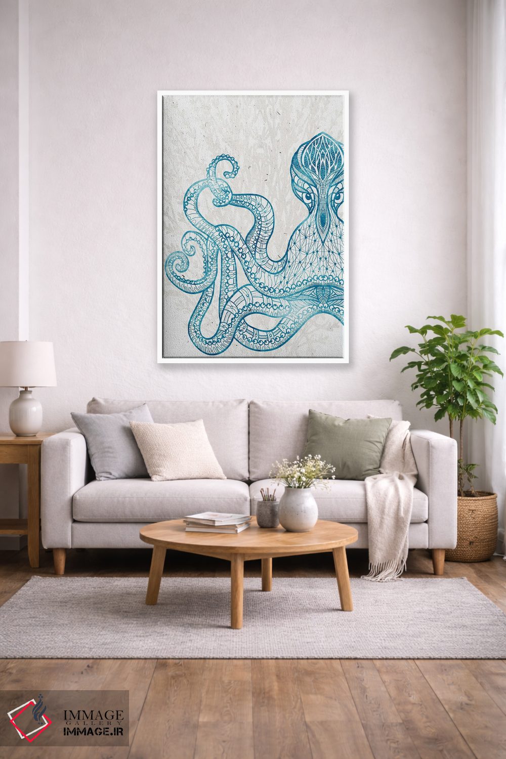 برای دیوارهای ساده، «موجود دریایی II» اثرِ «کیمبرلی آلن» در کنار رنگهای خنثی، تضاد دلچسبی میسازد؛ برای نشیمنهای خانوادگی انتخابی خوشسلیقه است. حسش صمیمی است، اما کیفیتش جدی و خوشپرداخت.