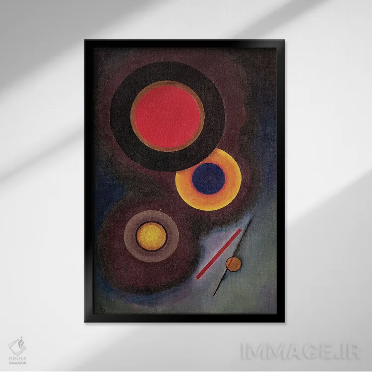 تابلو انتزاعی 1926,ترکیب با دایره و خط، ۱۹۲۶ اثر واسیلی کانباورسکی - نمای قاب‌دار مشکی