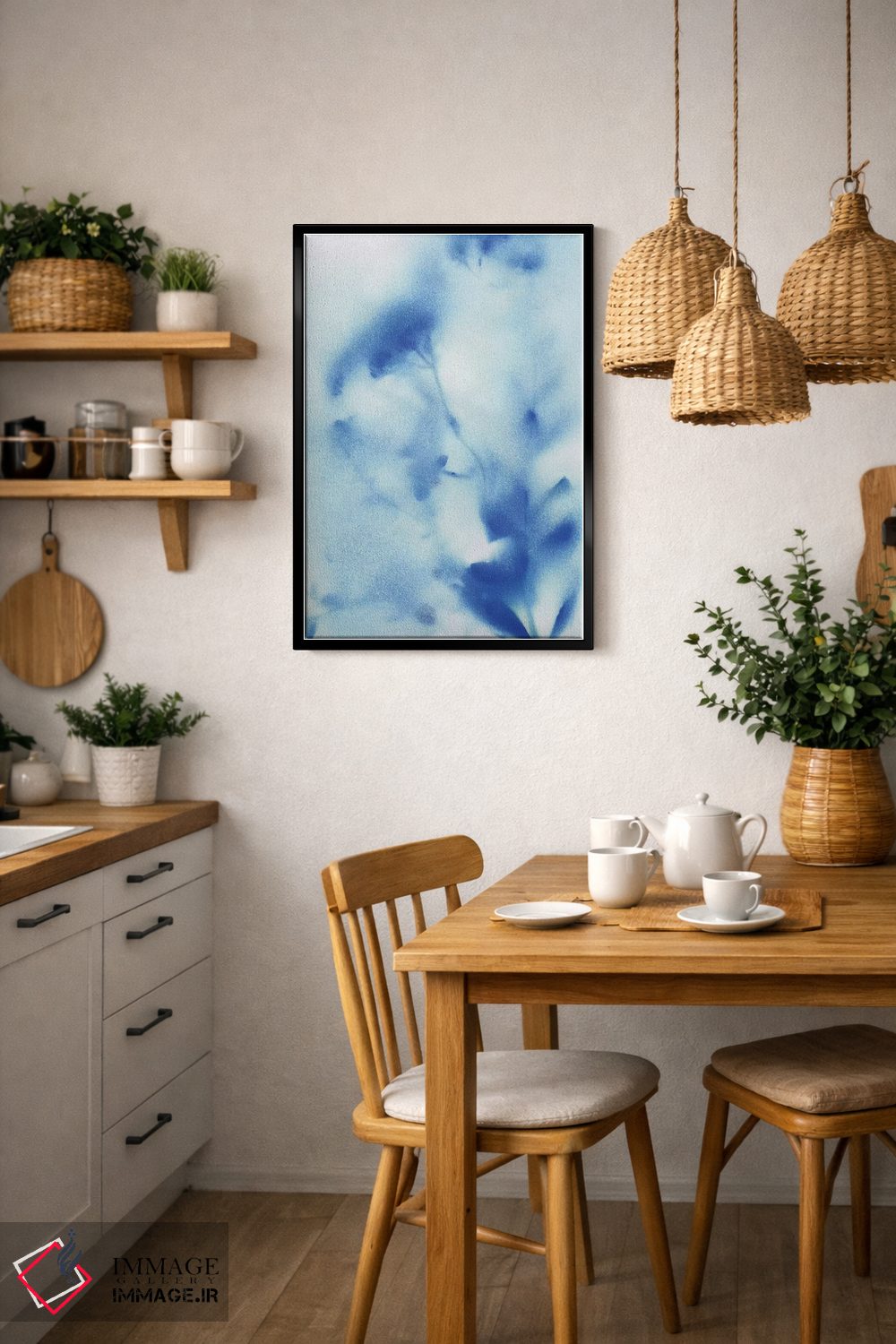 اگر فضا مینیمال است، آبی را در کتابهای آرت یا مجلهها جا بدهید تا ترکیببندی قویتر شود. انتخاب قاب هم میتواند این اکسنت را تقویت کند.