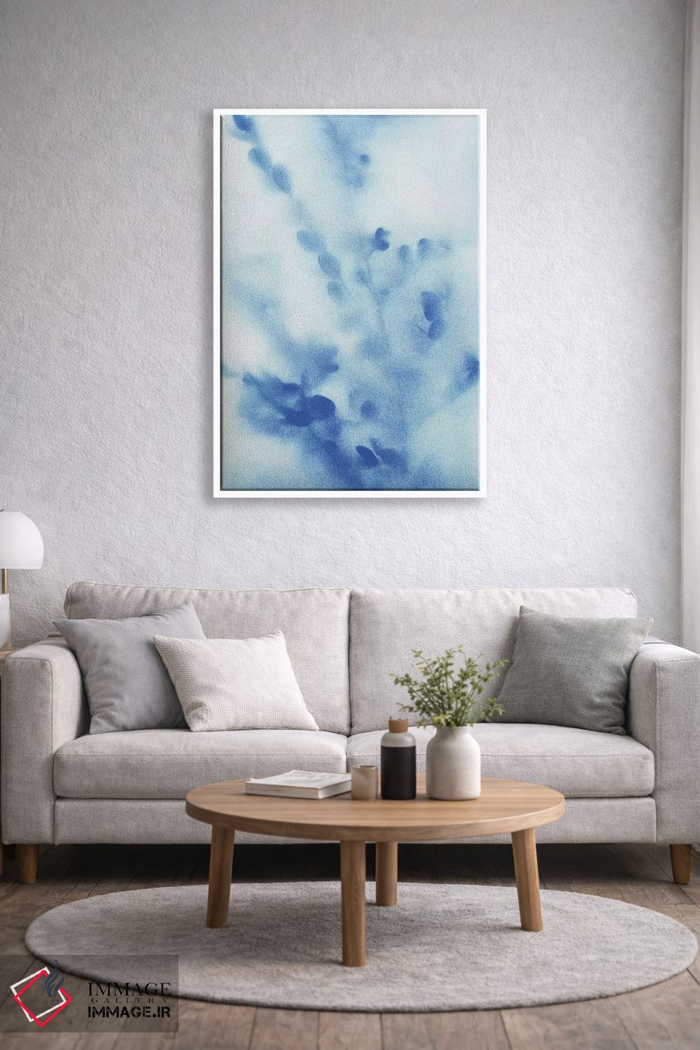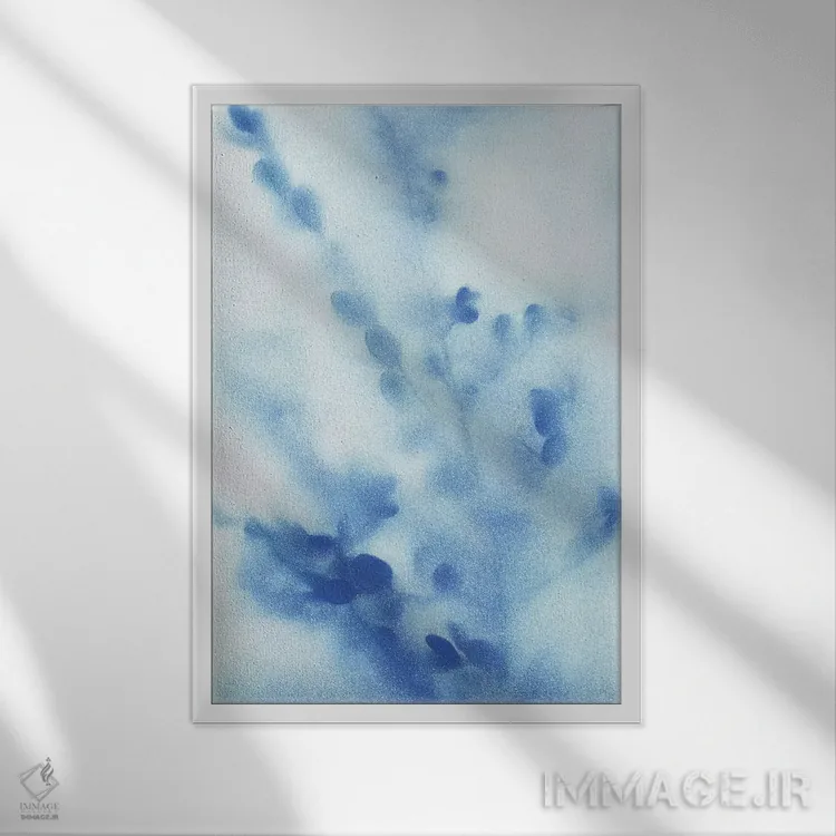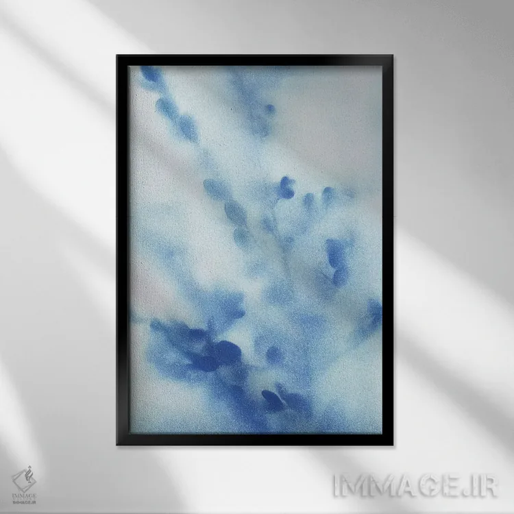 براساس پالت سرد اثر، قاب سفید مات (فریم باریک) پیشنهاد اول است و نقرهای برسخورده (متالیک) مکمل. برای سفارشهای پروژهای با ابعاد و قابهای اختصاصی با ایماژ در تماس باشید.