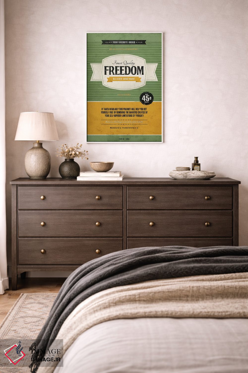 «آزادی» اثرِ «استر کی» در کنار مبلمان تیره یا روشن، خوب مینشیند؛ چون تاکیدش روی فرم و کیفیت بصری است.