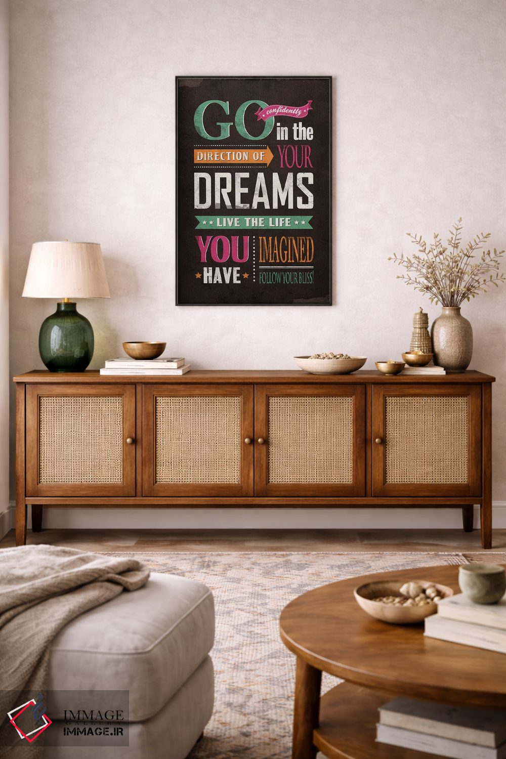 «با اعتماد به نفس پیش برو» اثرِ «استر کی» در فضای هنری، حسِ یک اثر جدی و پرداختشده را منتقل میکند؛ مناسب برای دکورهای شیک و رسمیتر.