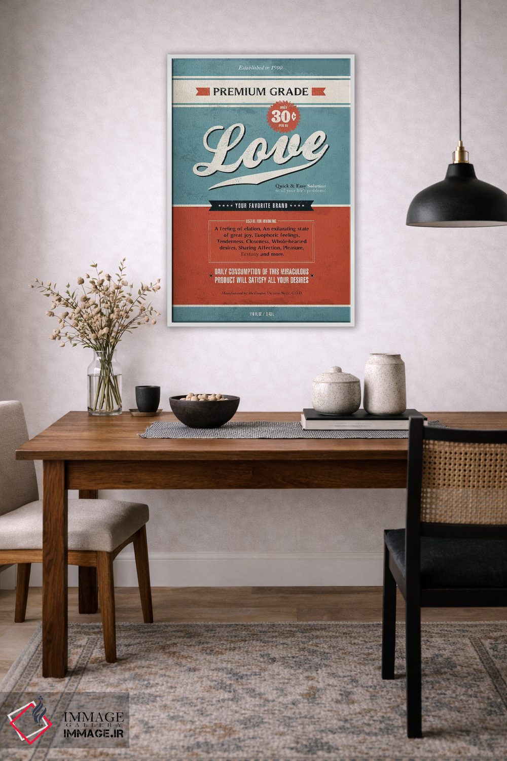 «عشق» اثرِ «استر کی» از آن کارهاییست که در دکورهای جدیتر (نشیمن رسمی یا دفتر کار) عالی مینشیند.