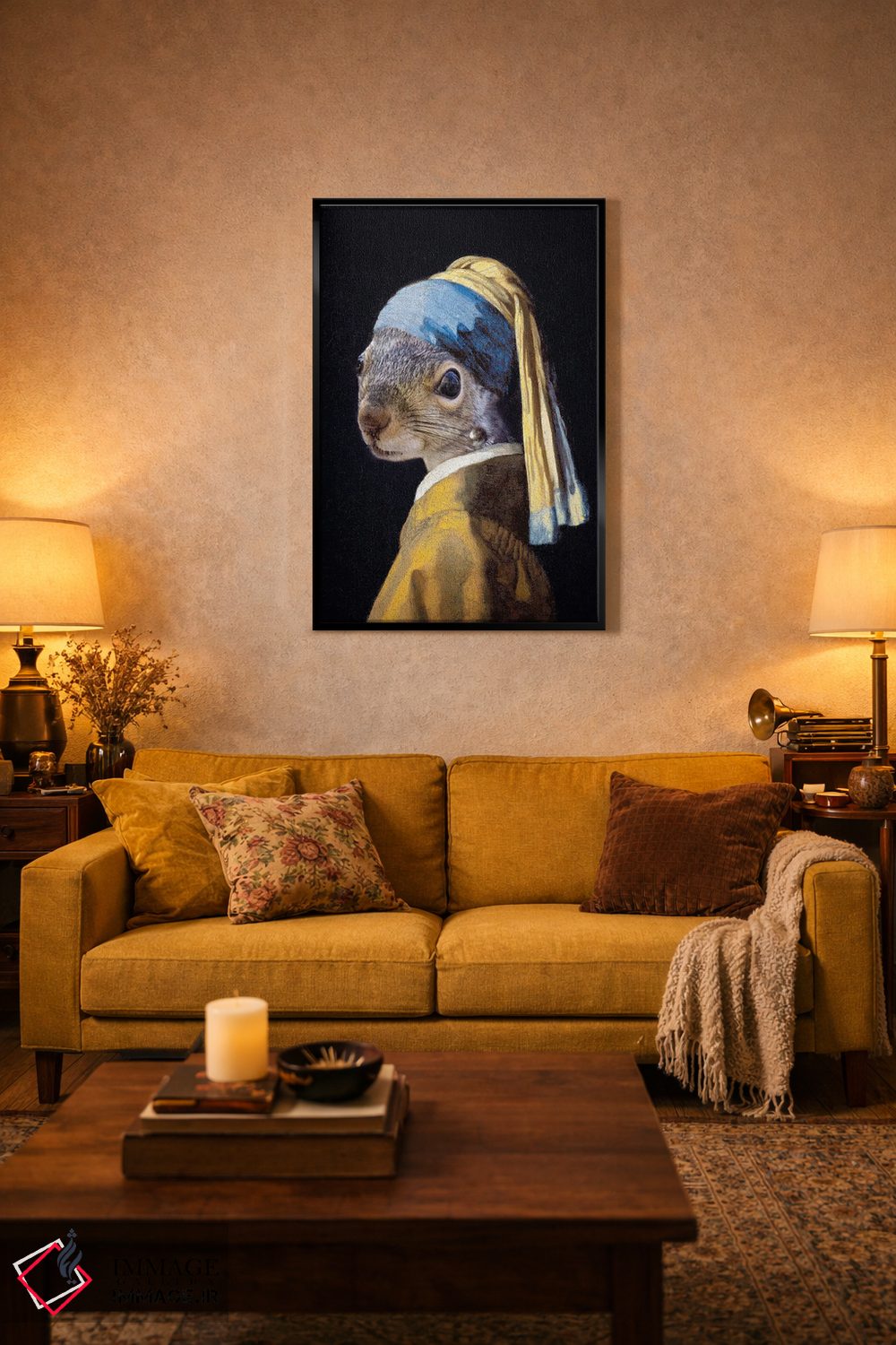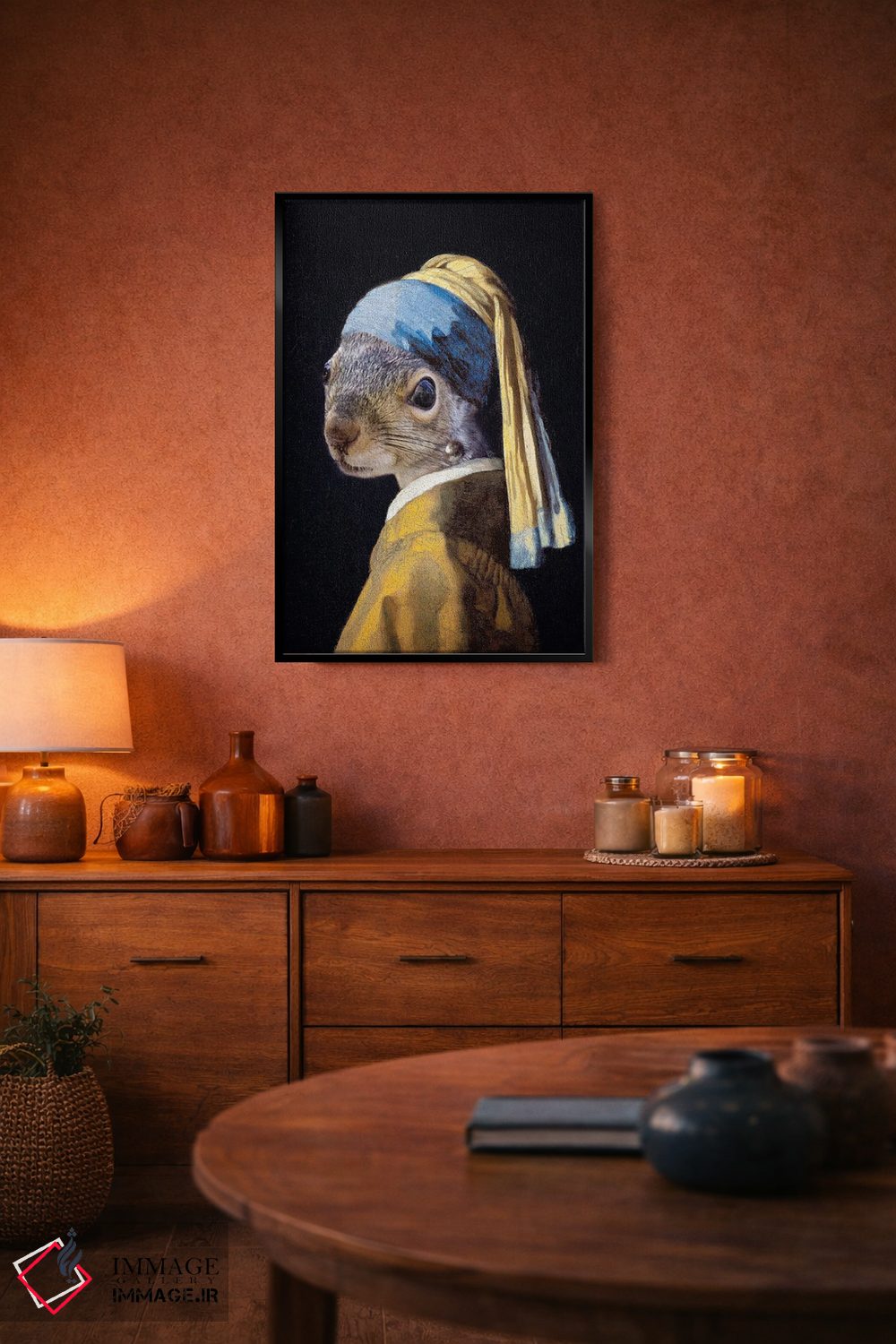 تابلو دکوراتیو سنجاب با گوشواره مروارید اثر کارن بورک