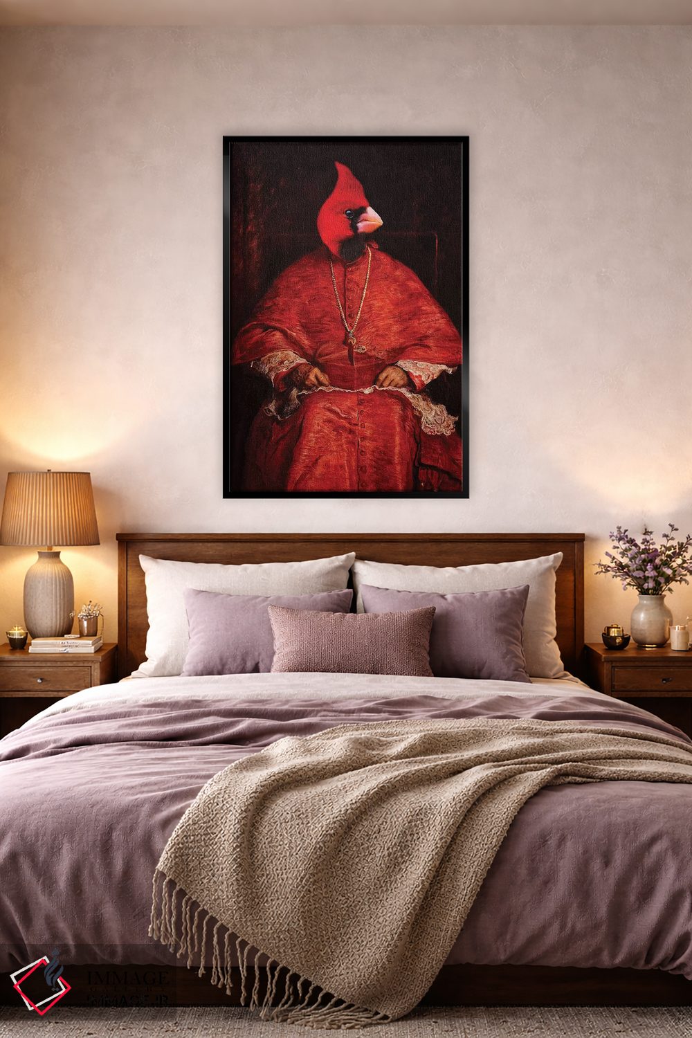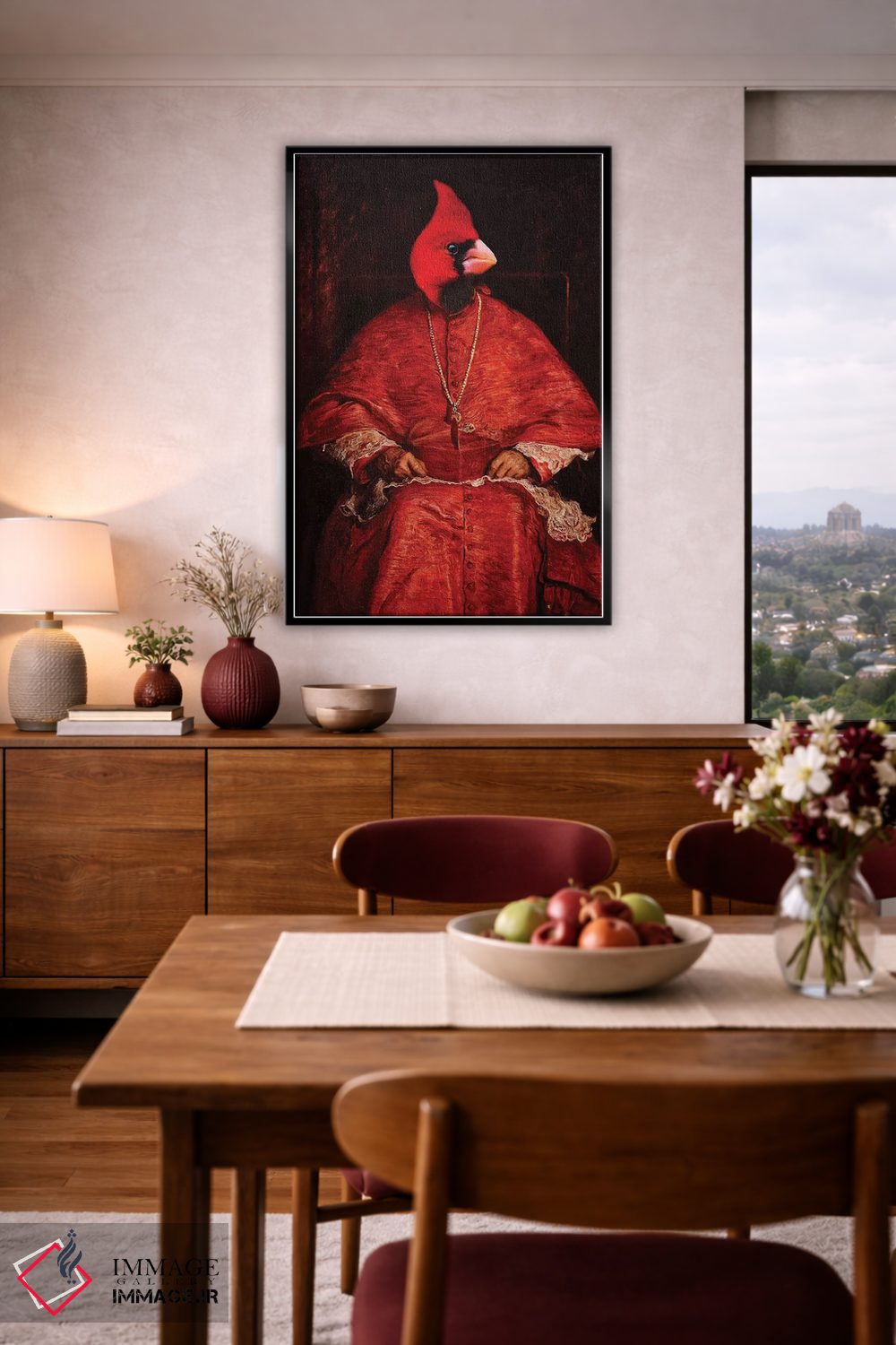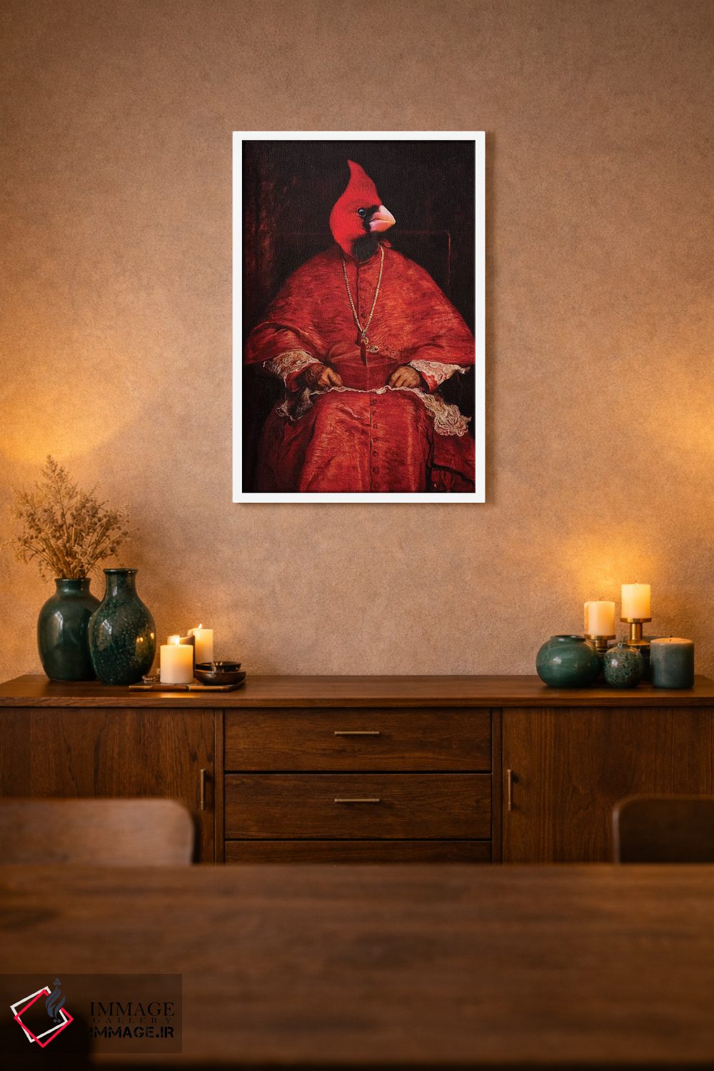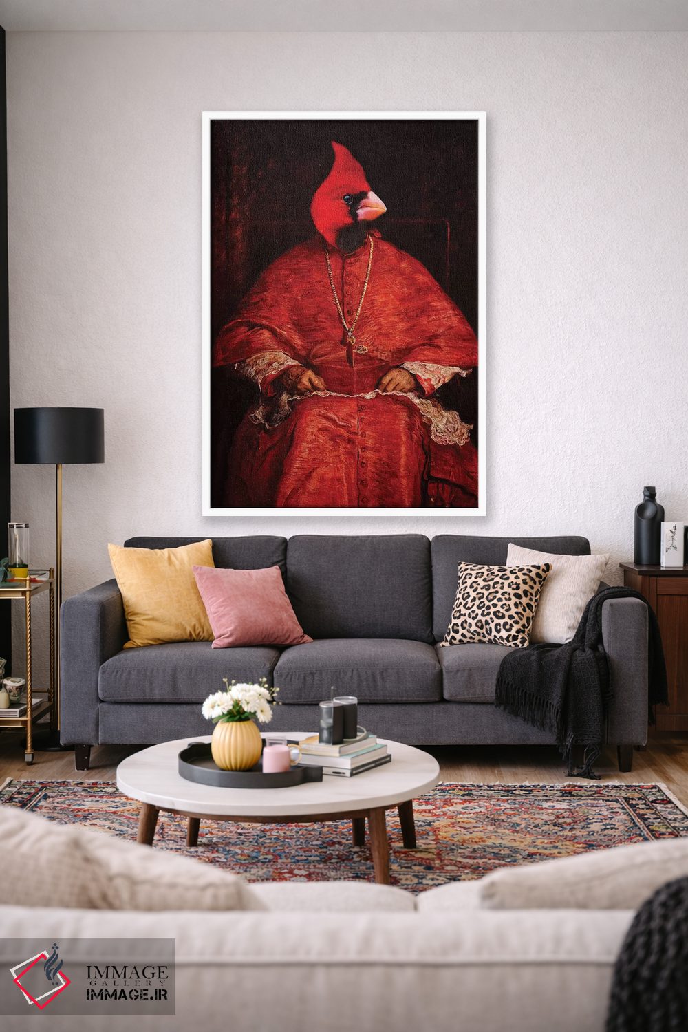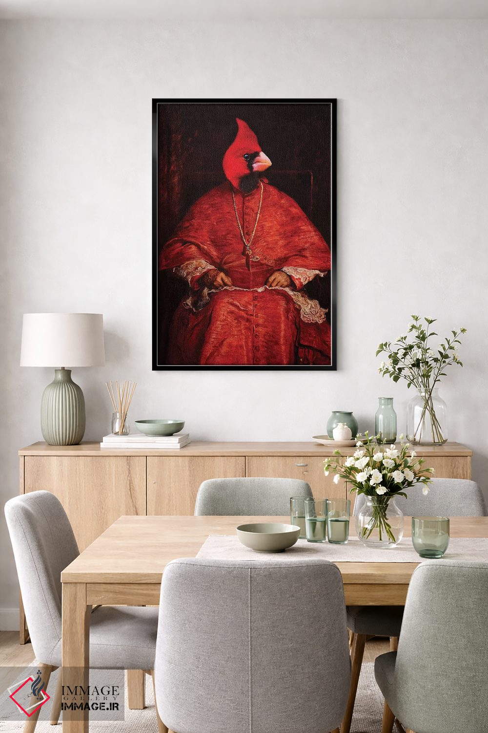 برای دکورهای صمیمی، «کارباورال (پرنده سرخ)» اثرِ «کارن بورک» یک لبخند ریز به چیدمان میدهد؛ برای نشیمنهای خانوادگی انتخابی خوشسلیقه است. در کنار گیاهان و نور طبیعی، جذابتر هم میشود.