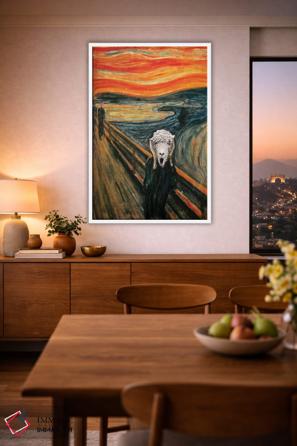 براساس پالت گرم اثر، قاب تیک گرم (چوبی) پیشنهاد اول است و مشکی مات (فریم متوسط) مکمل. برای سفارشهای پروژهای با ابعاد و قابهای اختصاصی با ایماژ در تماس باشید.