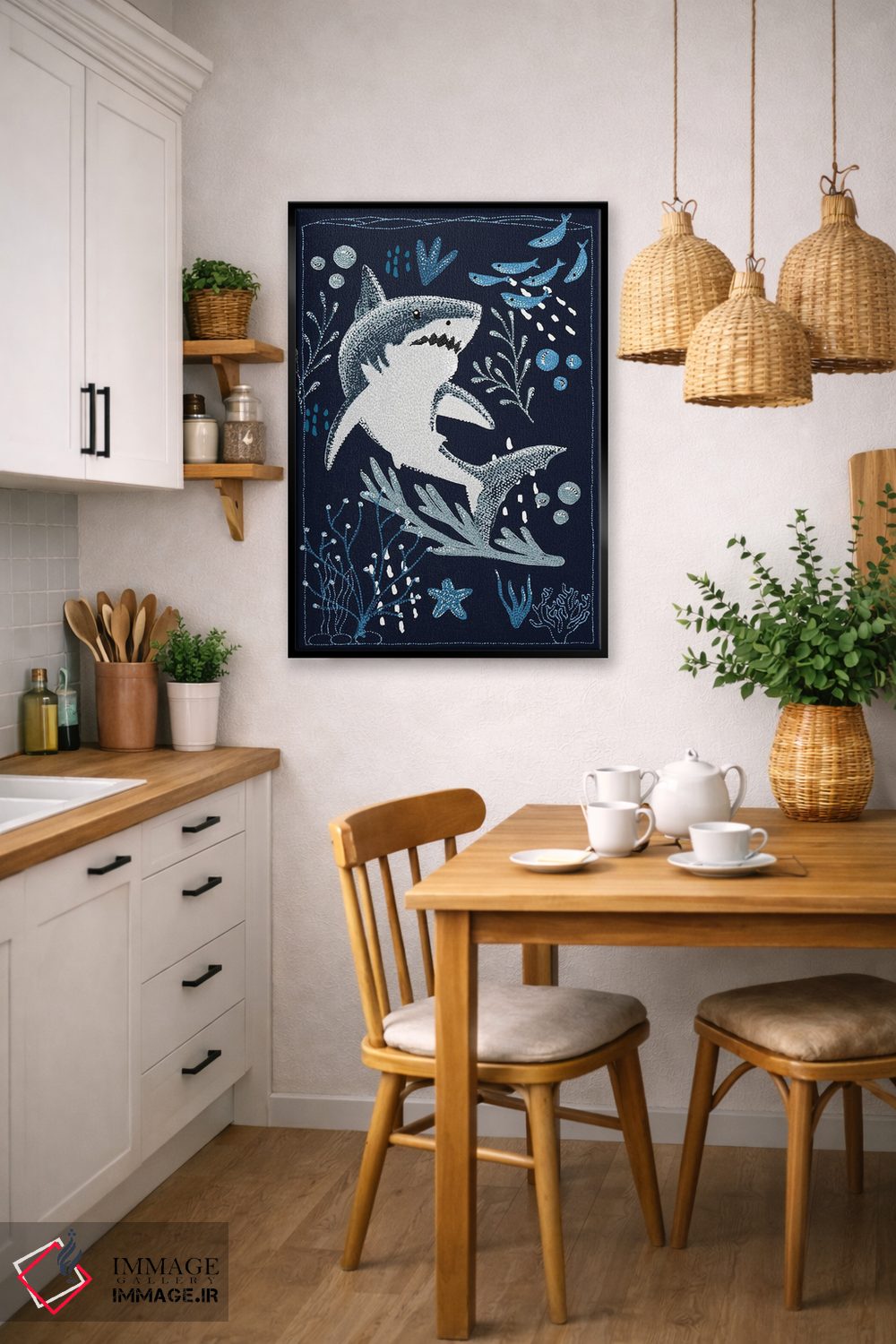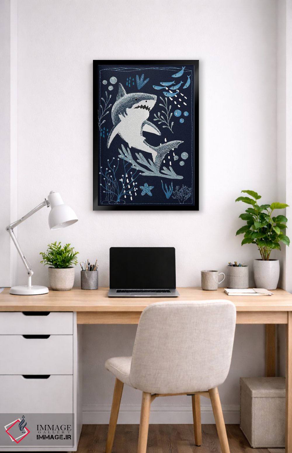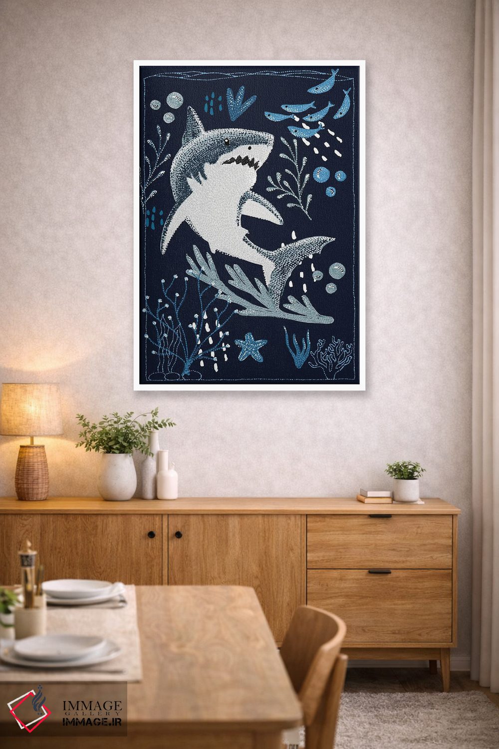 تابلو دکوراتیو کوسه سفید بزرگ باغ اقیانوس اثر کلسی امبلو