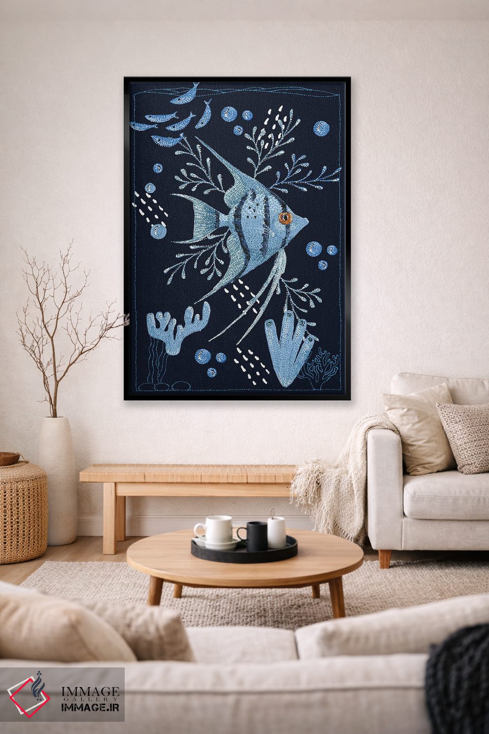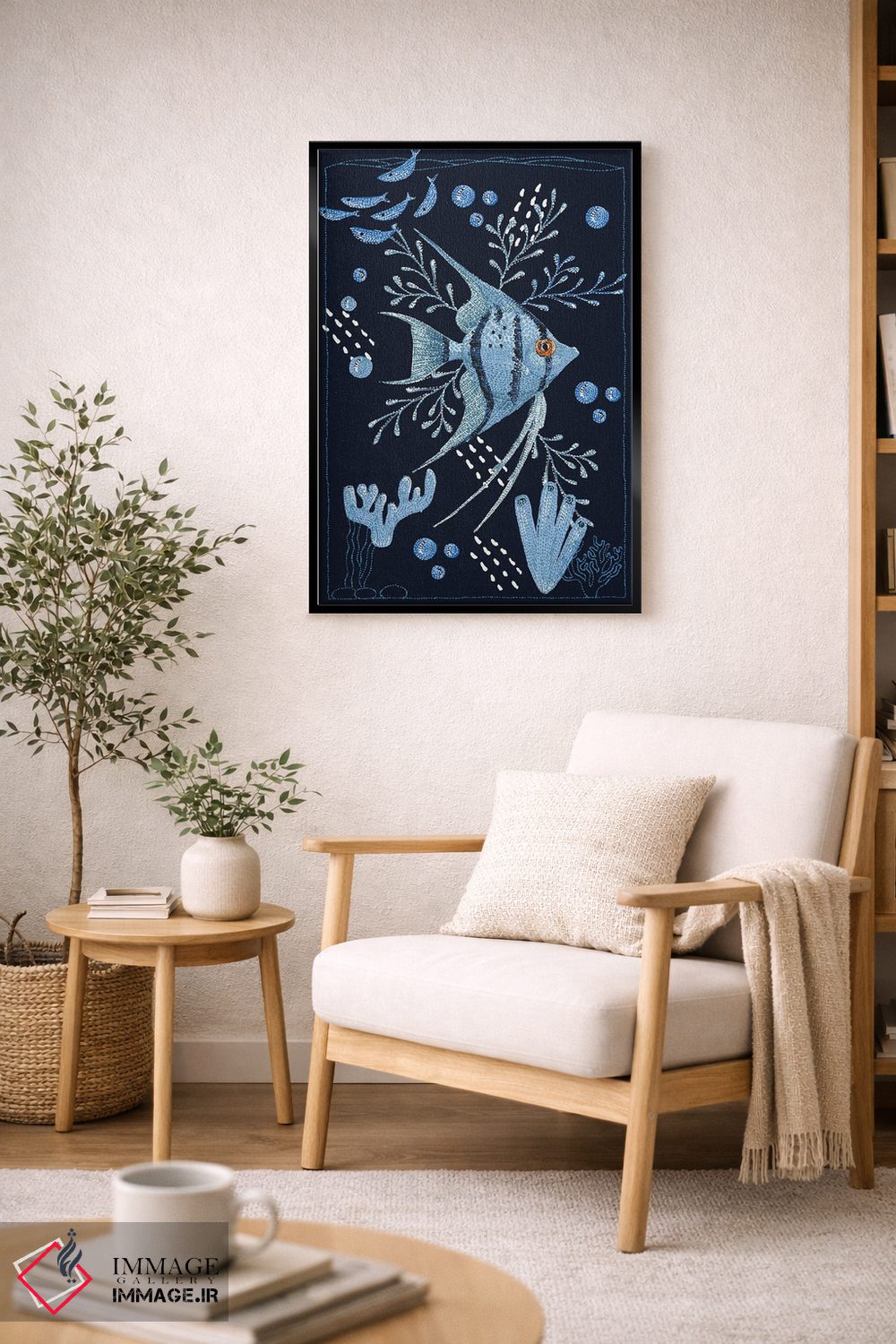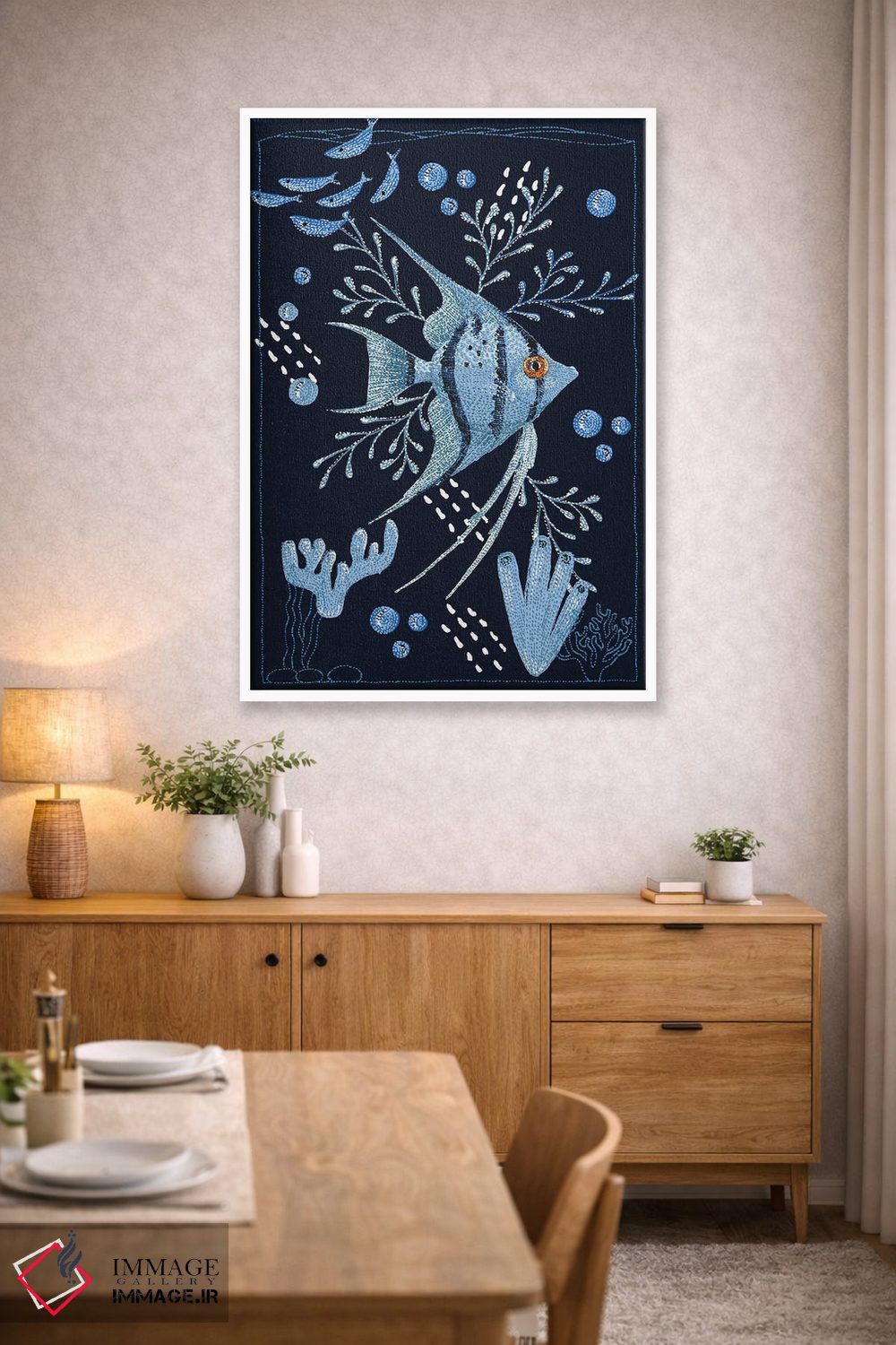 اگر به آثار حیوانات علاقه دارید، «ماهی فرشته» اثرِ «کلسی امبلو» گرما و شخصیت به فضا اضافه میکند، برای فضاهای روستیک یا بوهو گزینهٔ مناسبیست. در کنار گیاهان و نور طبیعی، جذابتر هم میشود.