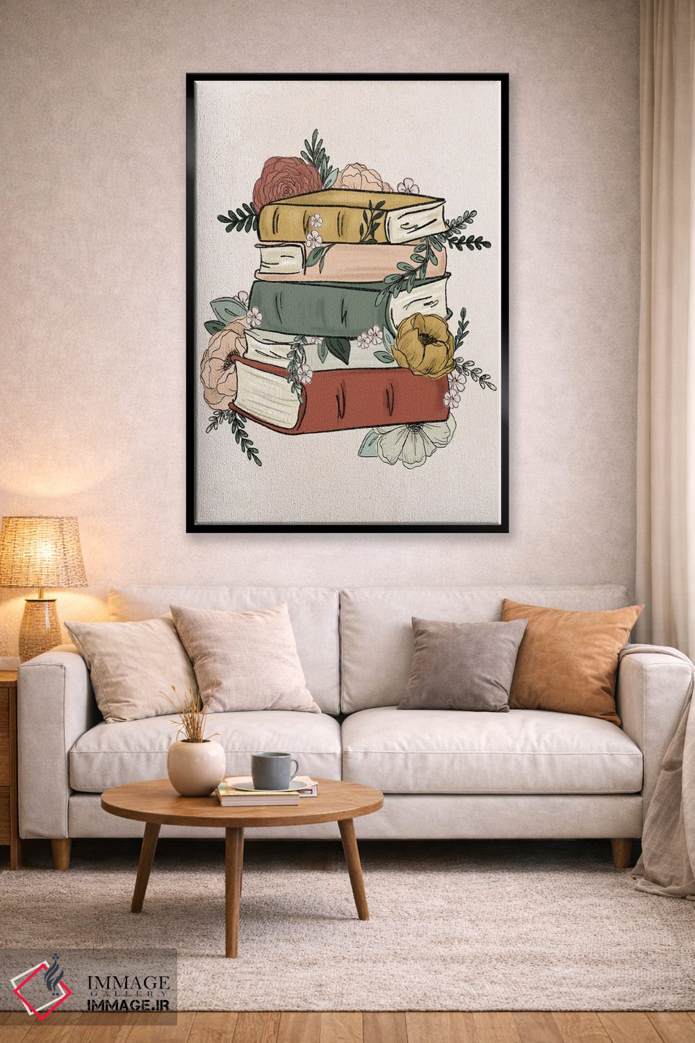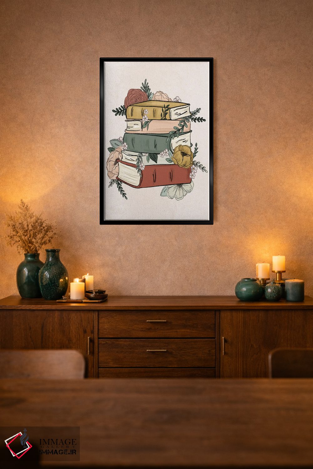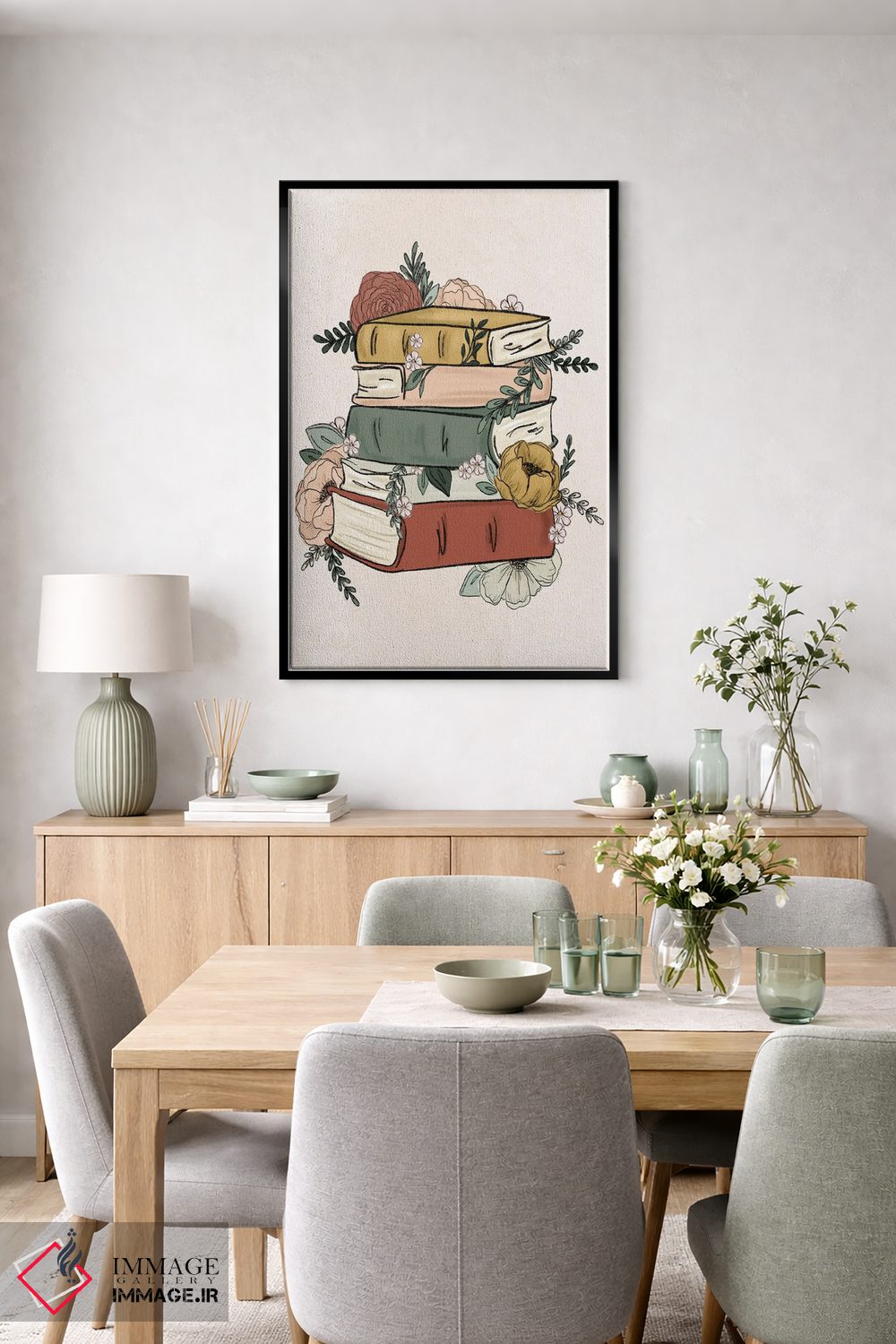 تابلو دکوراتیو کتاب های گل دار اثر کیتی برایانت - نمای روبه‌رو روی دیوار