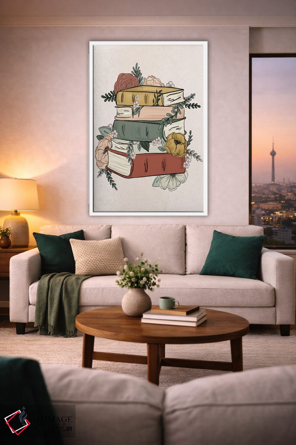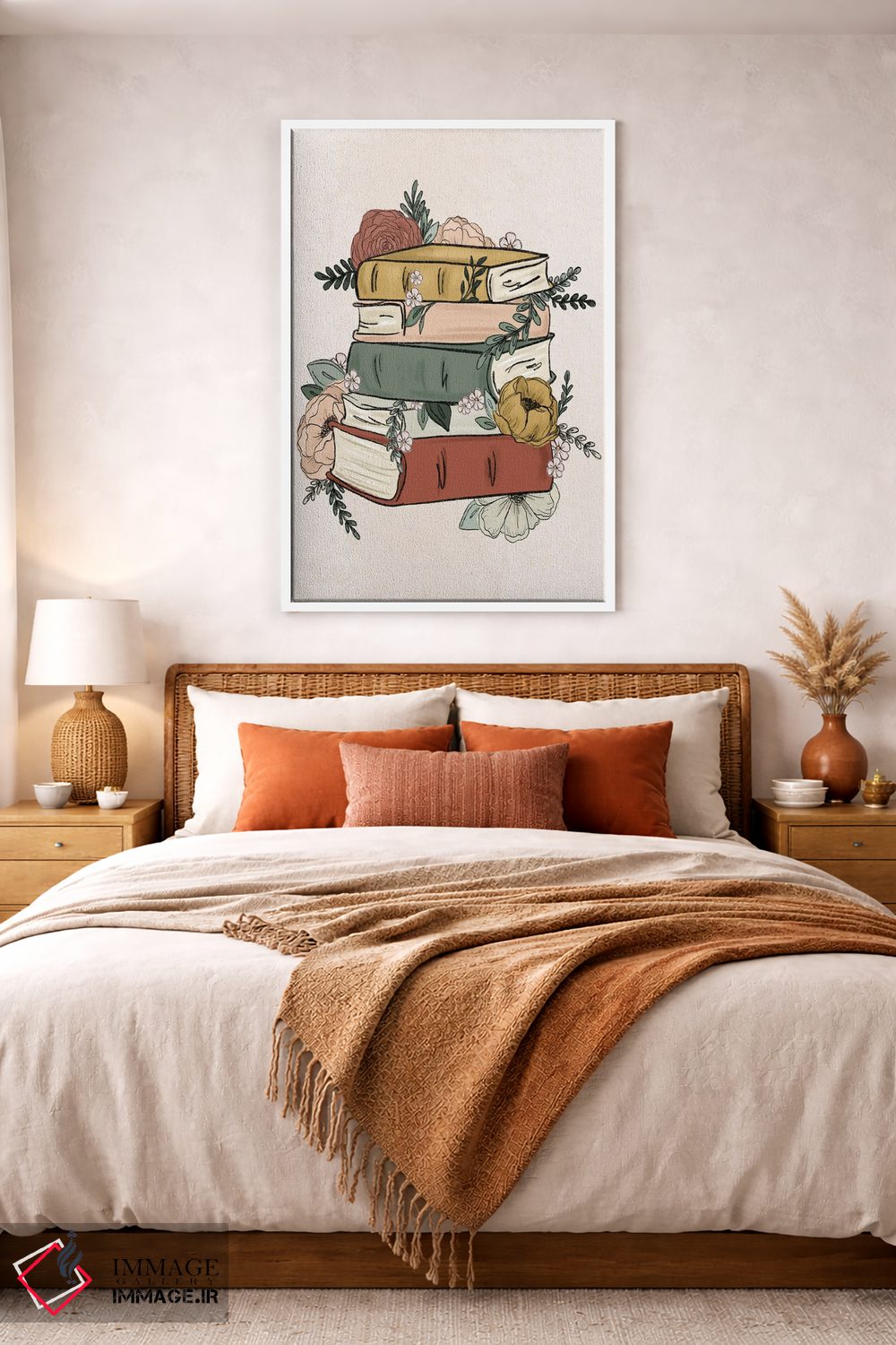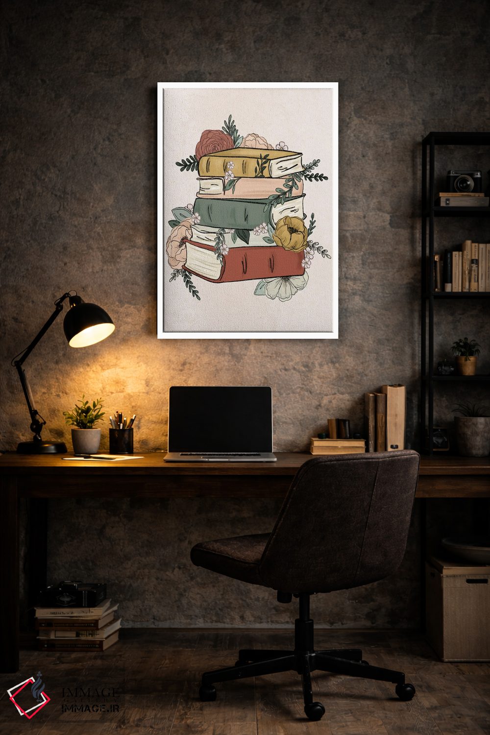 تابلو دکوراتیو کتاب های گل دار اثر کیتی برایانت - نمای روبه‌رو روی دیوار