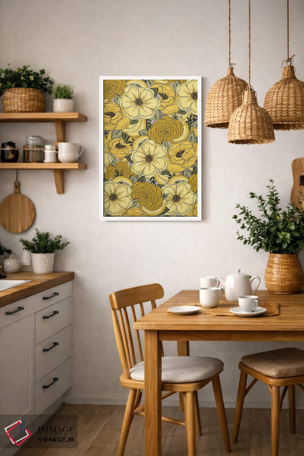 تابلو دکوراتیوِ این دسته با حسی هماهنگ؛ مناسب برای کافهاستایل خانگی و دیوار کنار میز ناهارخوری اثرِ «کیتی برایانت».