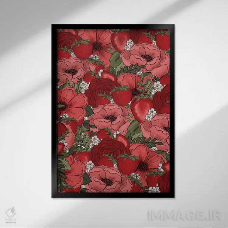 تابلو دکوراتیو گل های طراحی شده توت فرنگی اثر کیتی برایانت