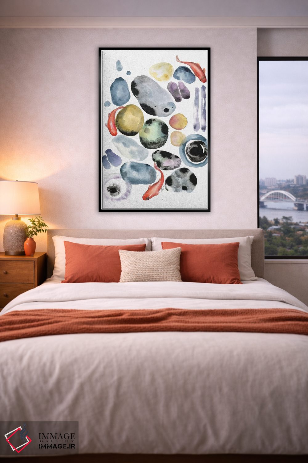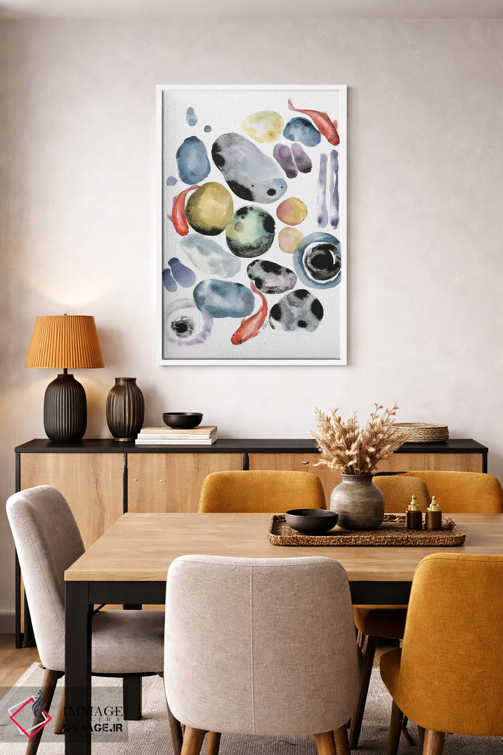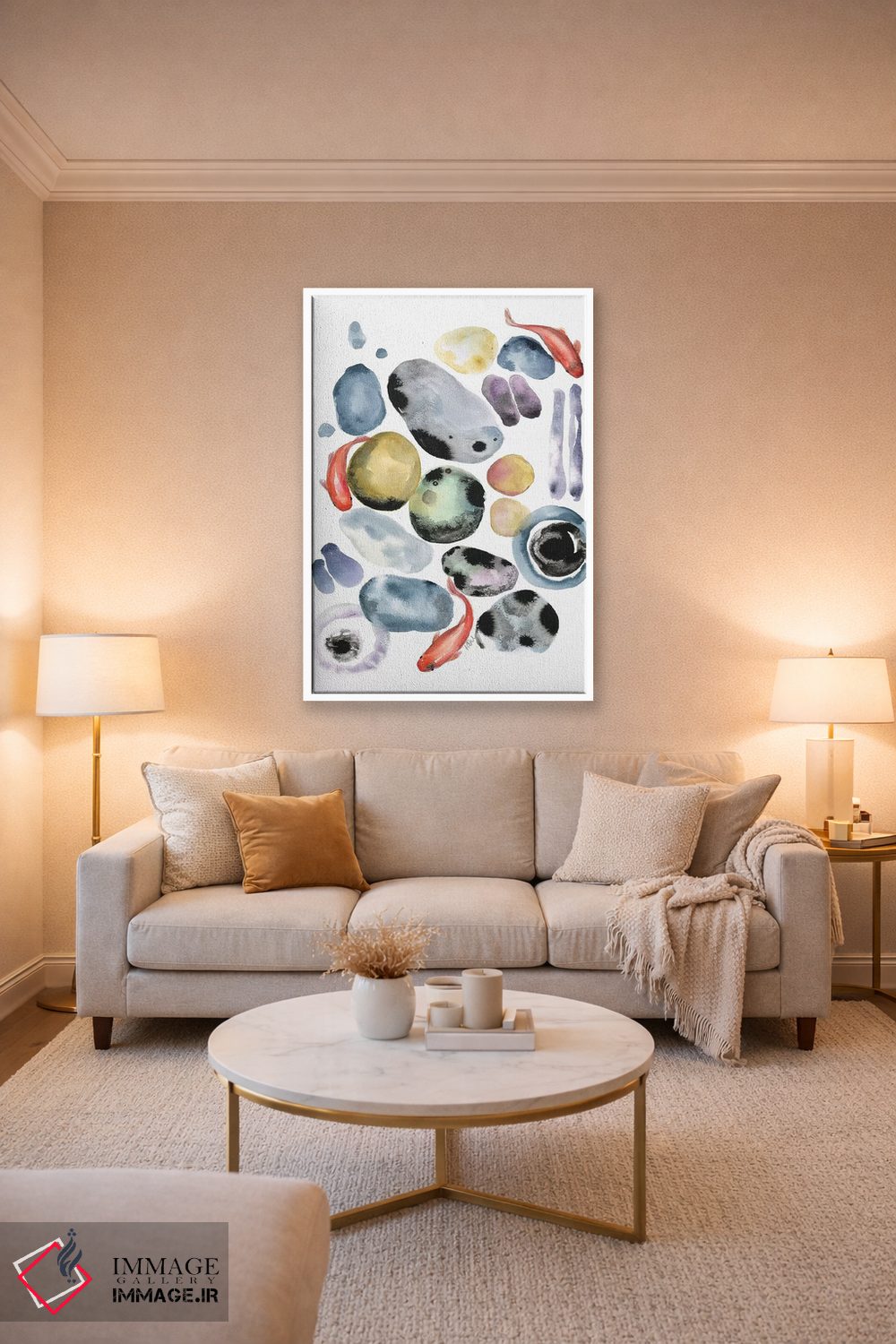 «کوی (ماهی ژاپنی) II» اثرِ «کیرستن دیل» میتواند به دیوار، انرژیِ نرم و زنده بدهد؛ برای نشیمنهای خانوادگی پیشنهاد میشود. برای دیوار گالریوار هم گزینهٔ خوبیست.