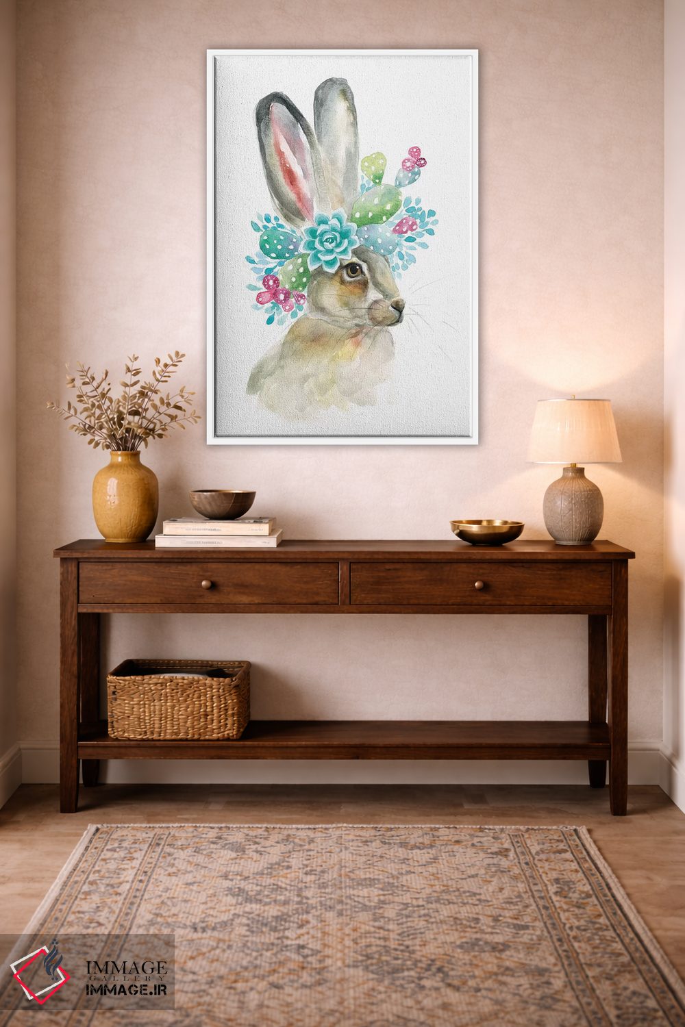 تابلو دکوراتیو خرگوش کاکتوسی اثر کیرستن دیل - نمای روبه‌رو روی دیوار