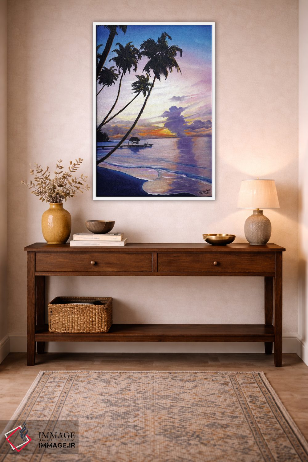 براساس پالت ترکیبی اثر، قاب تیک گرم (چوبی) پیشنهاد اول است و مشکی مات (فریم متوسط) مکمل. برای سفارشهای پروژهای با ابعاد و قابهای اختصاصی با ایماژ در تماس باشید.