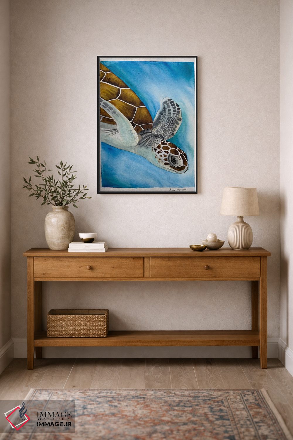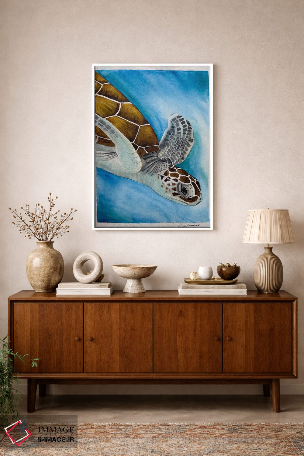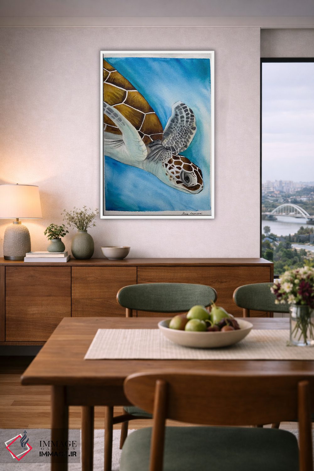 «لاکپشت شناگر» اثرِ «لوسیا کازاردووا» از آن کارهاییست که حس طبیعت را بیدغدغه وارد خانه میکند؛ برای دکورهای مدرن و مینیمال انتخاب خوبیست. برای دیوار گالریوار هم گزینهٔ خوبیست.