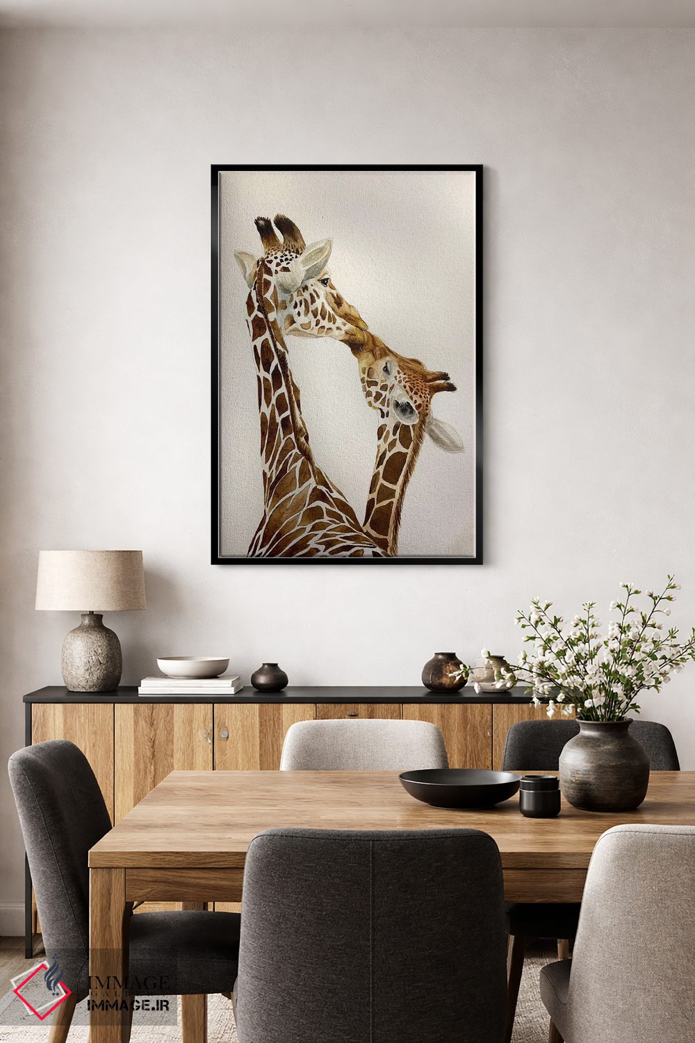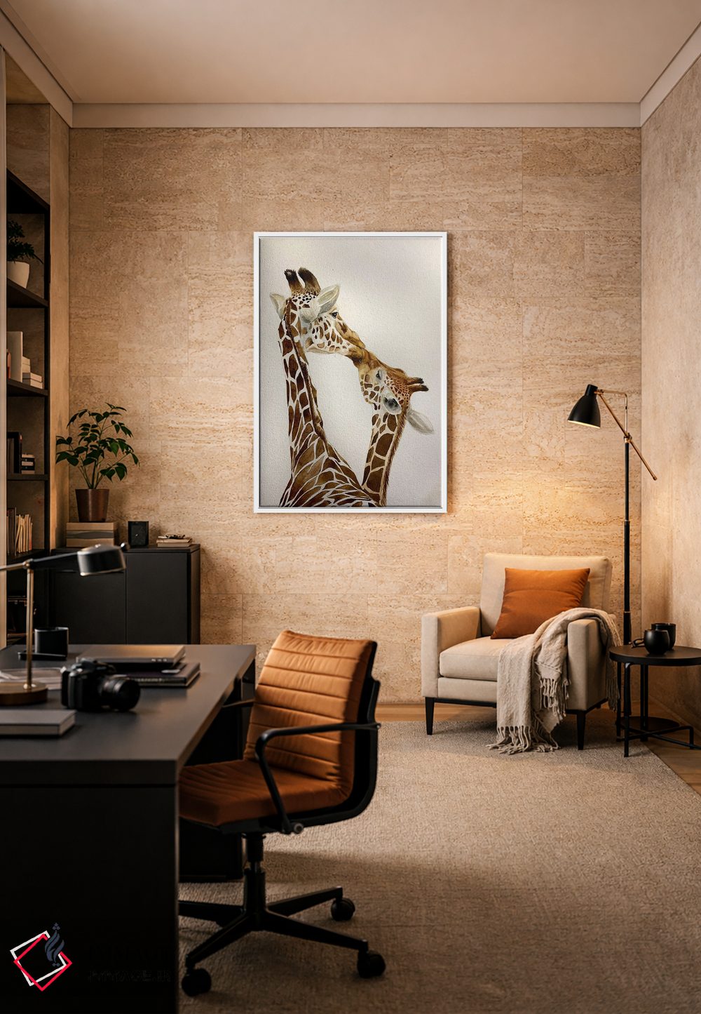 برای اتاقی که به یک عنصر دوستداشتنی نیاز دارد، «گورخرهای در حال بوسه» اثرِ «لوسیا کازاردووا» به دیوار، انرژیِ نرم و زنده میدهد؛ برای نشیمنهای خانوادگی انتخابی خوشسلیقه است. در کنار گیاهان و نور طبیعی، جذابتر هم میشود.