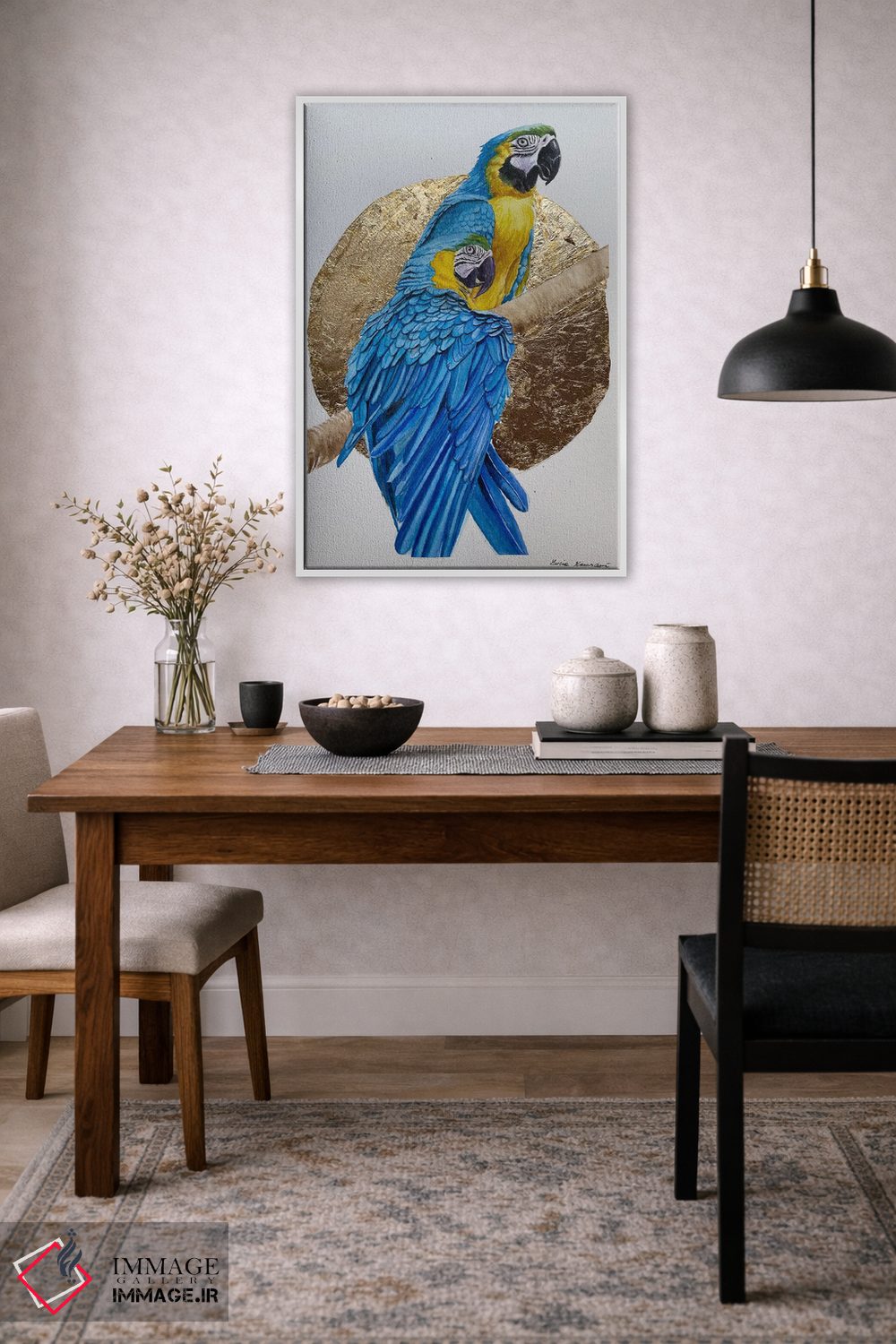 «طوطیها در غروب» اثرِ «لوسیا کازاردووا» از آن کارهاییست که بافت و جزئیات را طوری نشان میدهد که نگاه میماند؛ برای نشیمنهای خانوادگی انتخاب خوبیست. به دیوار، قصه میدهد—اما قصهای آرام و شیک.