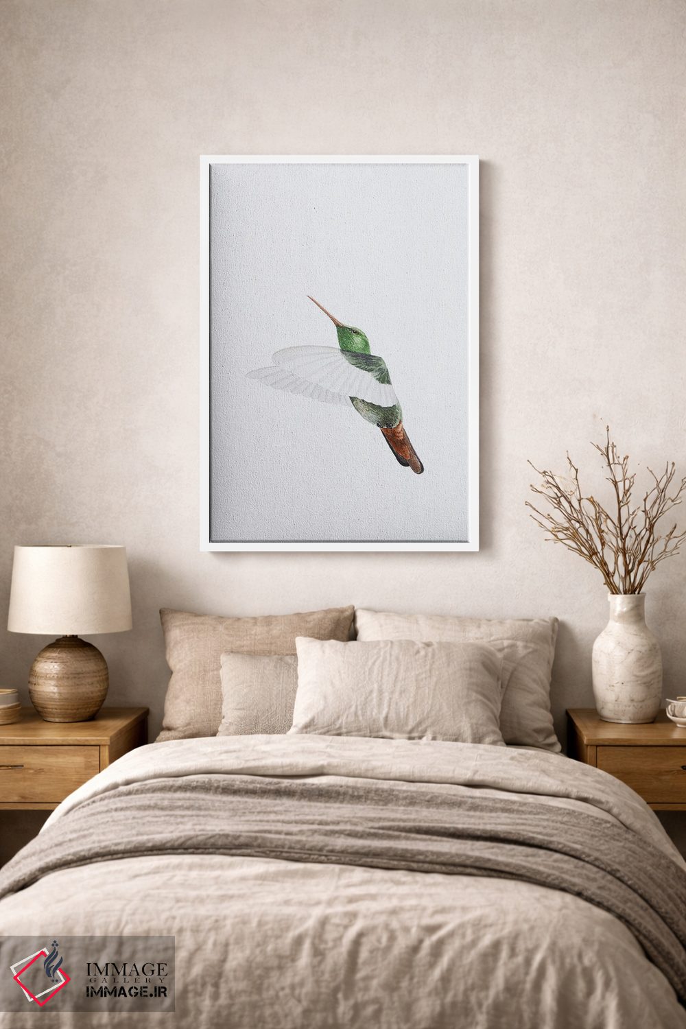 برای اتاقی که به یک عنصر دوستداشتنی نیاز دارد، «پرواز مرغ مگسخوار» اثرِ «کارینا دانیلچوک» به دیوار، انرژیِ نرم و زنده میدهد؛ برای نشیمنهای خانوادگی انتخابی خوشسلیقه است. در کنار گیاهان و نور طبیعی، جذابتر هم میشود.
