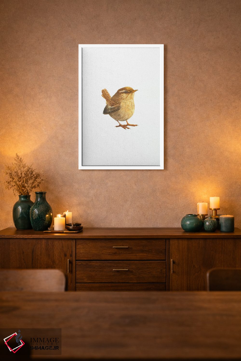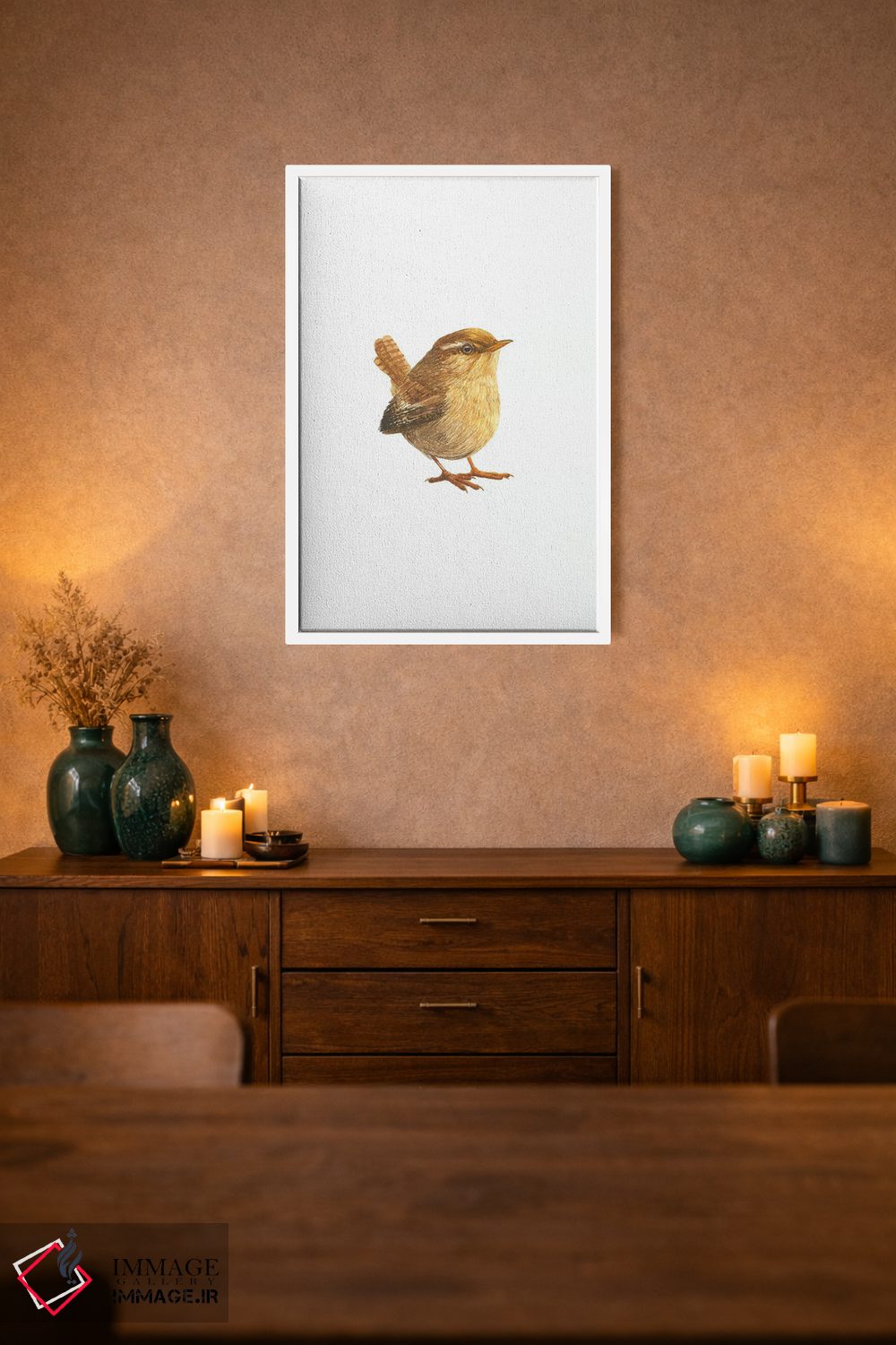 تابلو دکوراتیو فنچ کوچک اوراسیایی اثر کارینا دانیلچوک - نمای قاب‌دار سفید