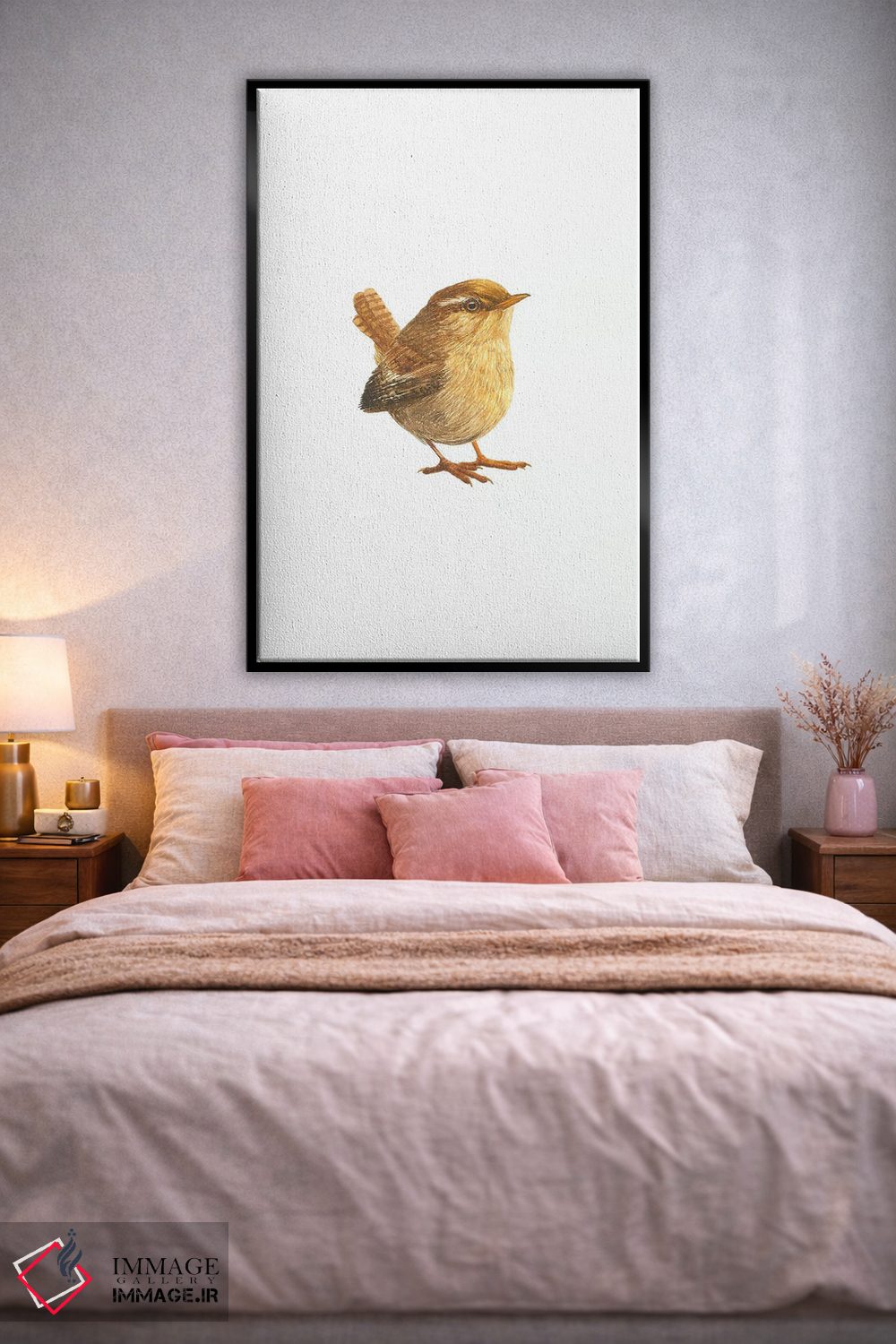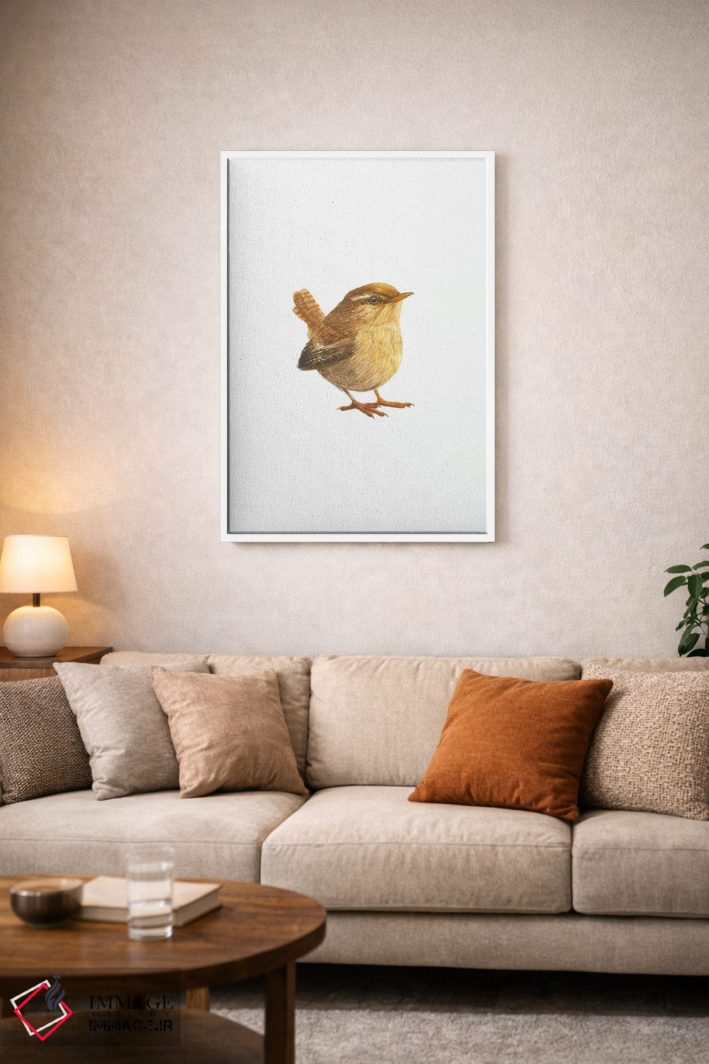 تابلو دکوراتیو فنچ کوچک اوراسیایی اثر کارینا دانیلچوک - نمای روبه‌رو روی دیوار