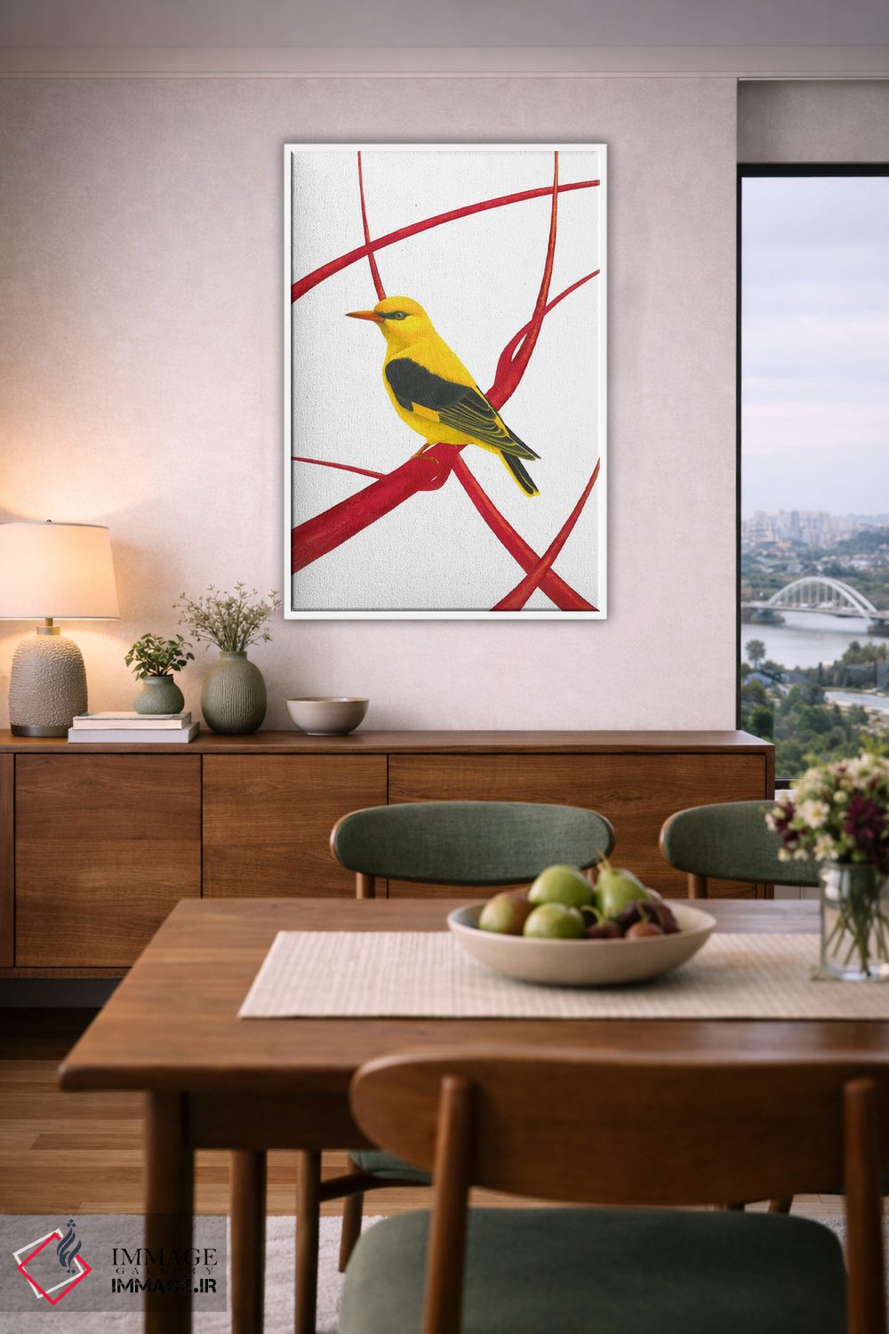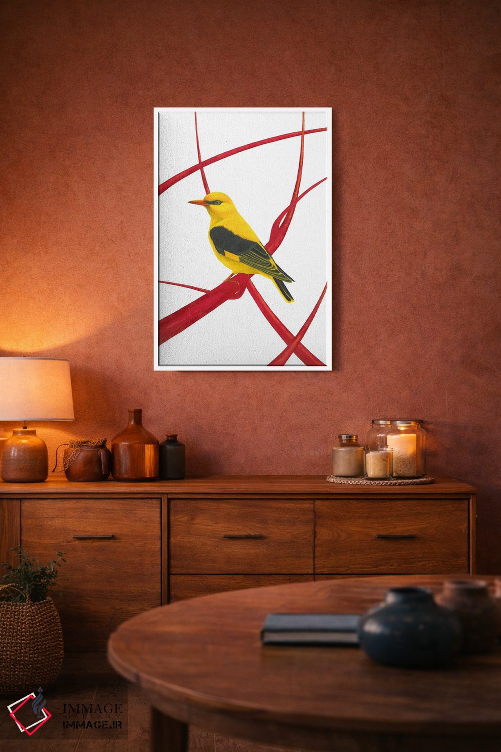 برای دکورهای صمیمی، «بلبل طلایی II» اثرِ «کارینا دانیلچوک» به دیوار، انرژیِ نرم و زنده میدهد؛ برای خانههایی با چوب و پارچههای گرم انتخابی خوشسلیقه است. با نورپردازی نقطهای، جذابتر هم میشود.