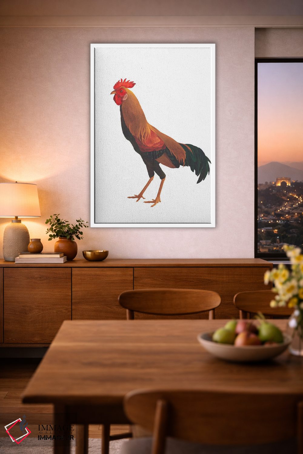 اگر میخواهید دیوار کمی سرزندگیِ محترمانه داشته باشد، «خروس اوکراینی» اثرِ «کارینا دانیلچوک» برای دکورهای مینیمال، یک نقطهٔ توجه میسازد، برای خانههایی با چوب و پارچههای گرم گزینهٔ مناسبیست. به دیوار، قصه میدهد—اما قصهای آرام و شیک.