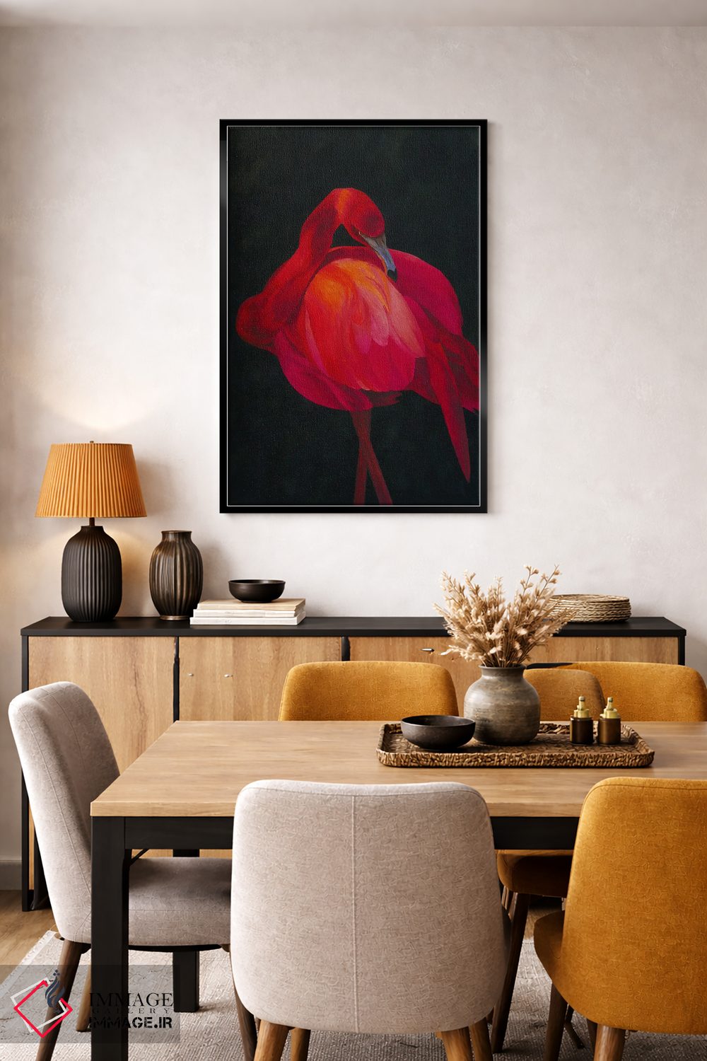 براساس پالت گرم اثر، قاب تیک گرم (چوبی) پیشنهاد اول است و مشکی مات (فریم متوسط) مکمل. برای سفارشهای پروژهای با ابعاد و قابهای اختصاصی با ایماژ در تماس باشید.