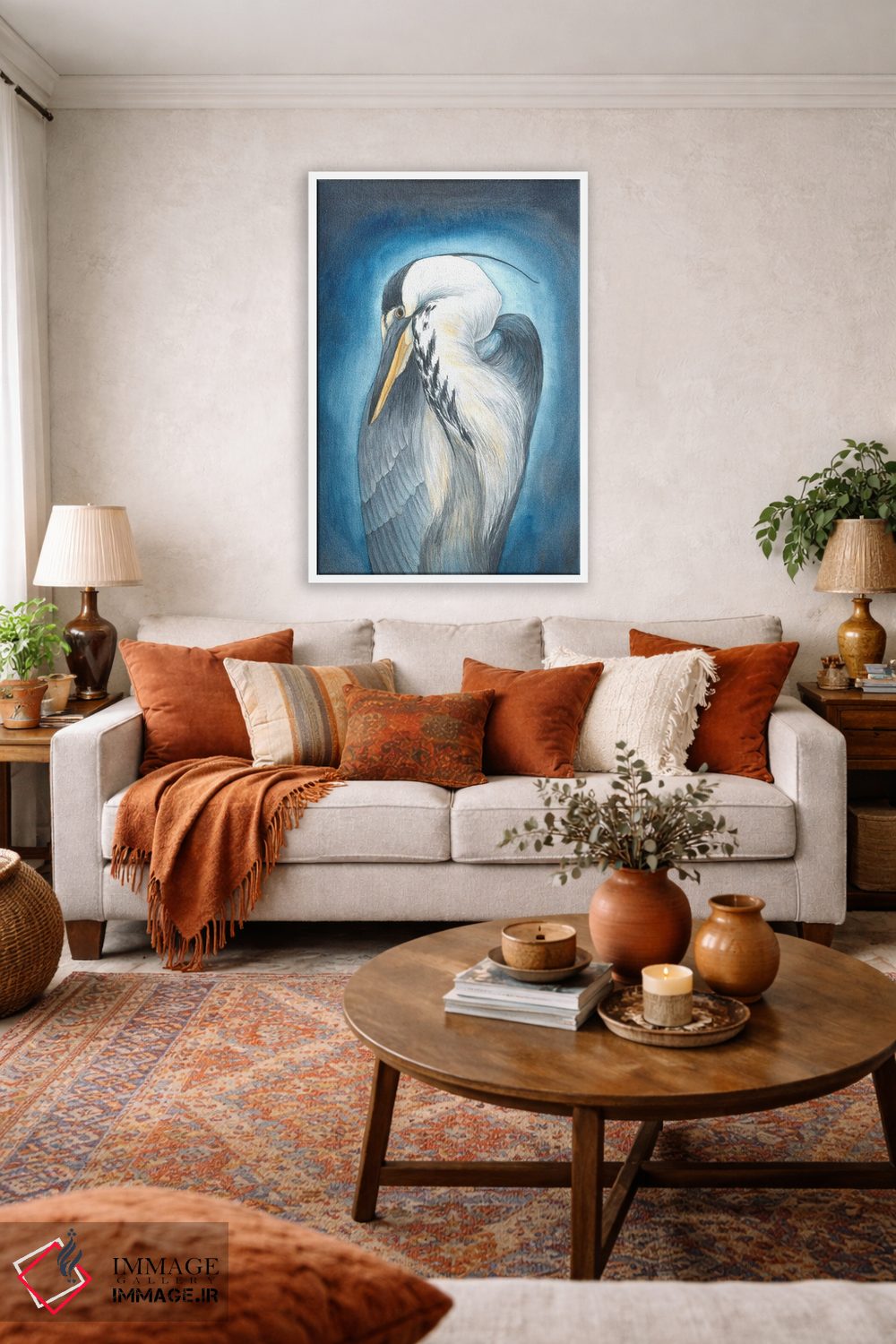 برای اتاقی که به یک عنصر دوستداشتنی نیاز دارد، «حواصیل در آبی» اثرِ «کارینا دانیلچوک» به فضا، گرمیِ ملایم اضافه میکند؛ برای کافههای کوچک و صمیمی انتخابی خوشسلیقه است. اگر دنبال اثر دوستداشتنیِ «بیغلو» هستید، این یکی دقیق مینشیند.