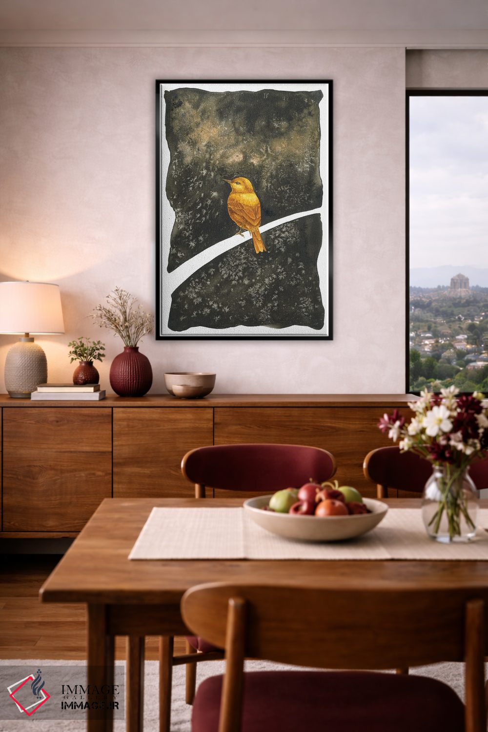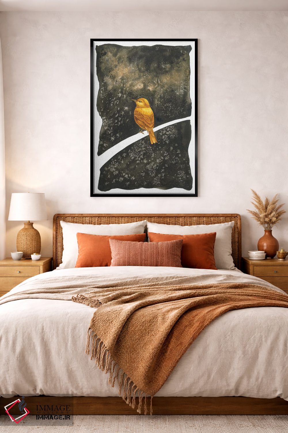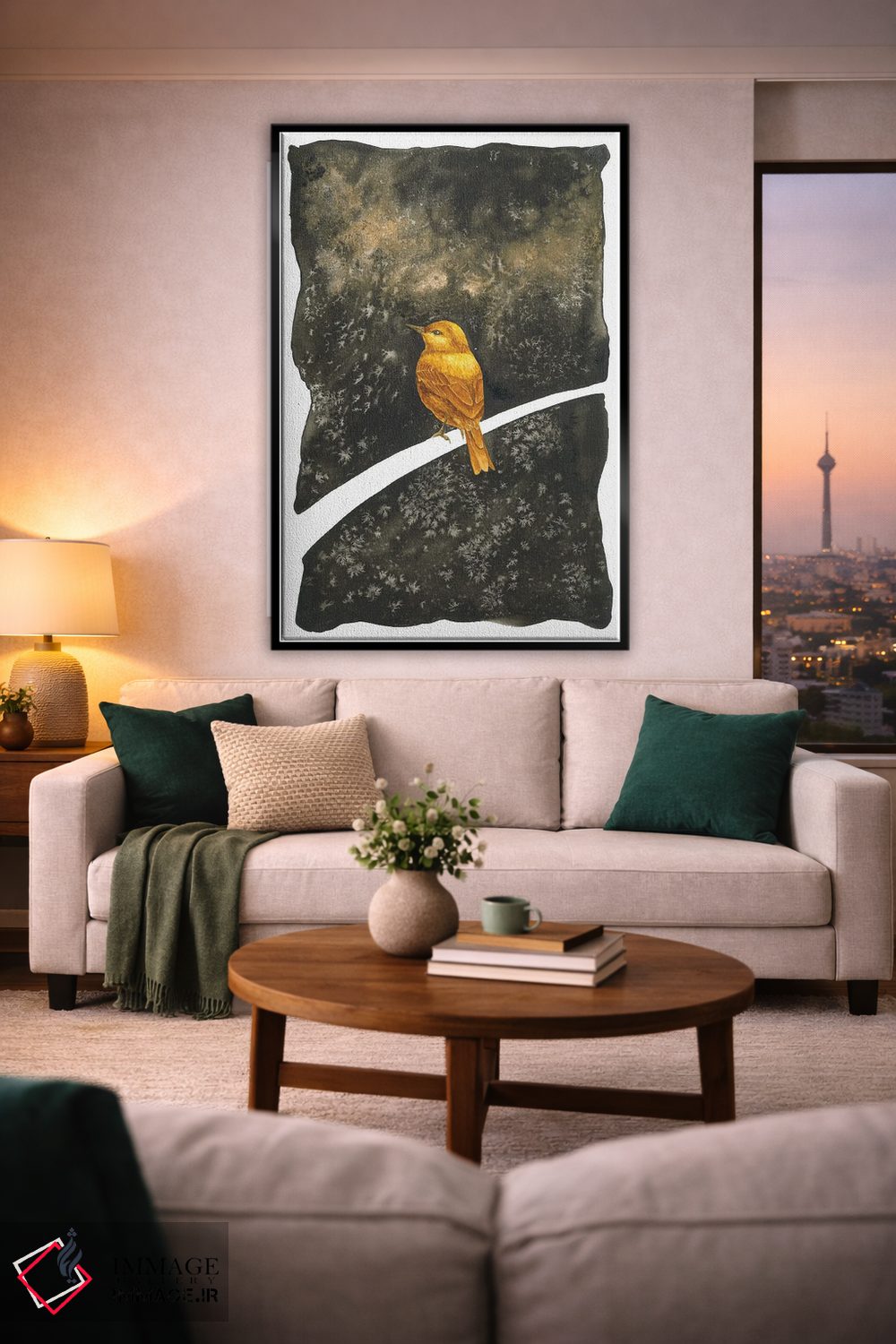 برای دکورهای صمیمی، «خواب دیدن پرنده طلایی» اثرِ «کارینا دانیلچوک» فضا را صمیمیتر و دعوتکنندهتر نشان میدهد؛ برای اتاق کودک (بدون لحن کودکانه) انتخابی خوشسلیقه است. به دیوار، قصه میدهد—اما قصهای آرام و شیک.