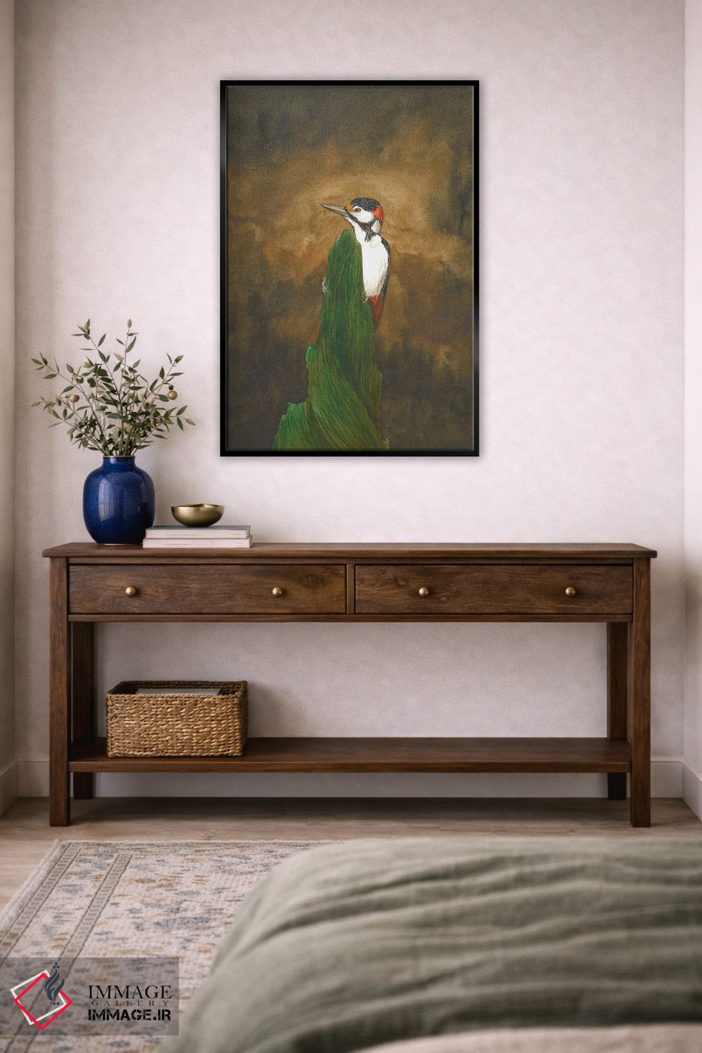 «دارکوب در جنگل» اثرِ «کارینا دانیلچوک» میتواند برای دکورهای مینیمال، یک نقطهٔ توجه بسازد؛ برای دکورهای مدرن و مینیمال پیشنهاد میشود. هر بار نگاهش میکنید، یک جزئیات تازه به چشم میآید.