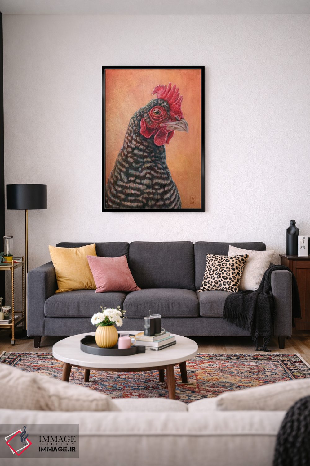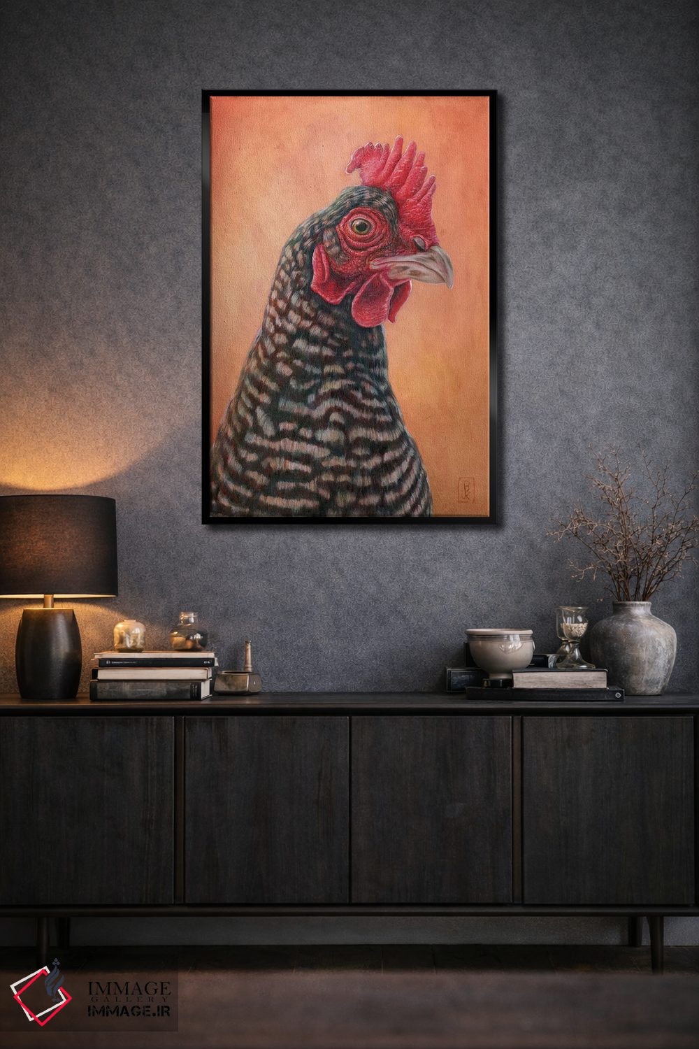 برای دیوارهای ساده، «رئیس» اثرِ «براندون کیهنر» فضا را صمیمیتر و دعوتکنندهتر نشان میدهد؛ برای نشیمنهای خانوادگی انتخابی خوشسلیقه است. با نورپردازی نقطهای، جذابتر هم میشود.