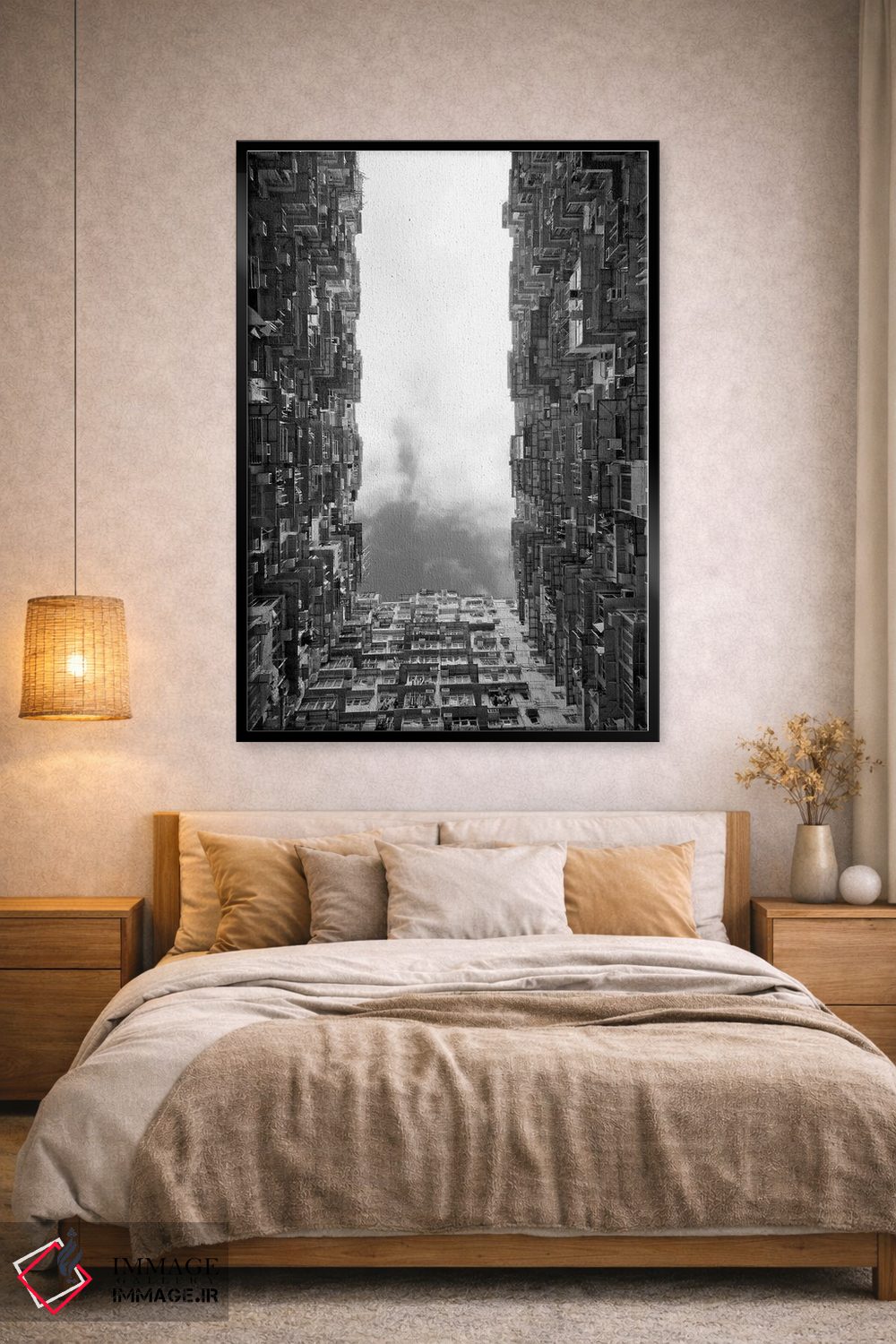 این تابلو اثرِ «کرن سو» با حس سیاهوسفید، برای راهروهای شیک و دیوارهای کمجزئیات انتخاب مناسبی است؛ موضوعِ این اثر هم فضا را مرتبتر نشان میدهد.