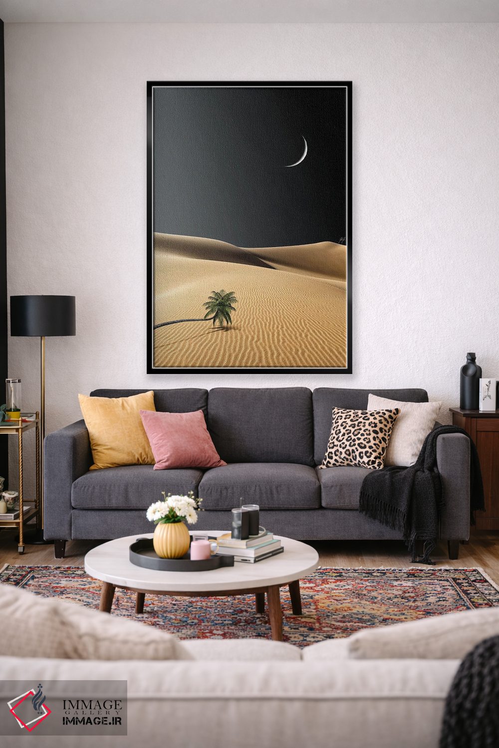 بوم گالری ایماژ طوری طراحی شده که اثر روی دیوار «پرداختشده» و حرفهای دیده شود—نه پرزرقوبرقِ بیپایه؛ بلکه دقیق و خوشپرداخت. با بافت ظریف کنواس، حس اثر هنری را در نگاه نزدیک نگه میدارد بهخصوص وقتی نور موضعی ملایم داشته باشید. با کنترل تونها، از تند شدن ناخواستهی رنگها جلوگیری میکند و همین «پرداخت» تفاوت را میسازد. حاصل کار، یک تابلو خوشنشین است که هم از دور اثرگذار است و هم از نزدیک خوشخوان؛ برای هدیهی هنری هم انتخاب محترمانهای است. در دیوارهای خنثی (سفید، کرم، طوسی روشن) اثر تمیزتر خودش را نشان میدهد.