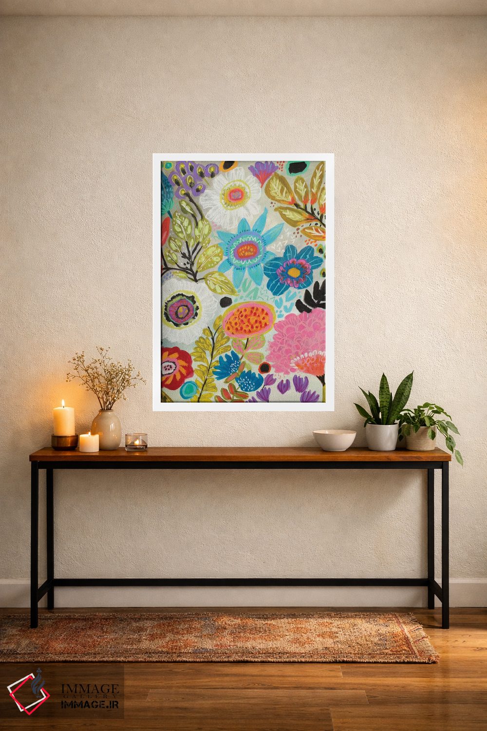 «باغ مخفی گُلی ۱» اثرِ «کارن فیلدز» میتواند به دیوار، روشناییِ ملایم و دلنشین بدهد؛ برای نشیمنهای روشن پیشنهاد میشود. جزئیاتش از نزدیک هم ارزش تماشا دارد.